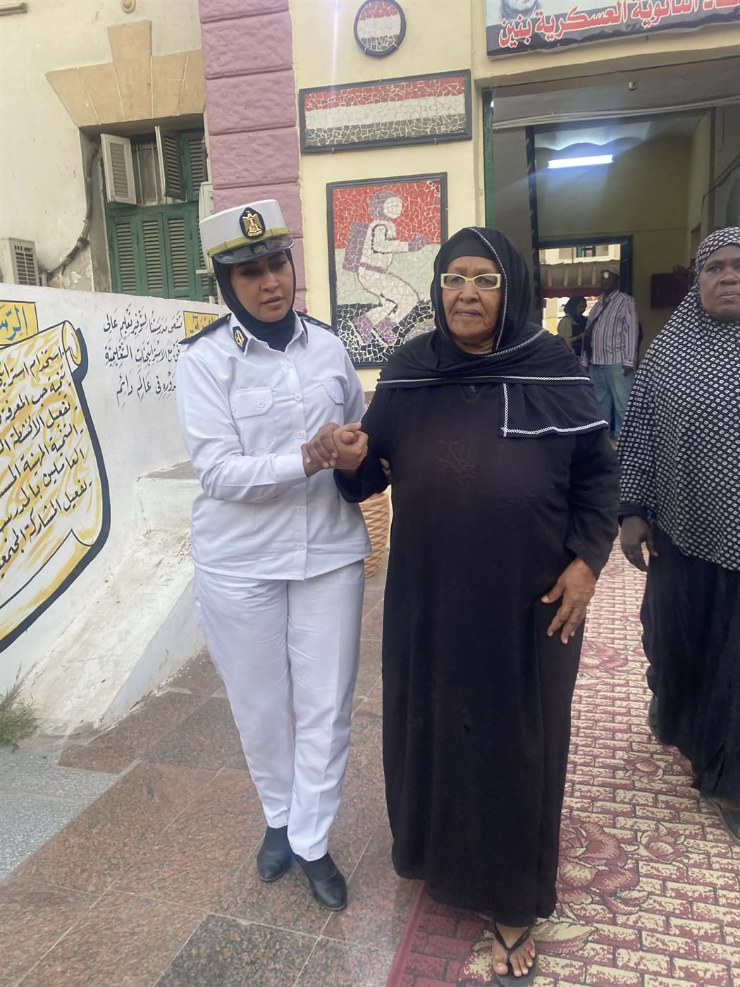 شاهد، الشرطة النسائية تساعد كبار السن أمام اللجان الانتخابية في أسوان