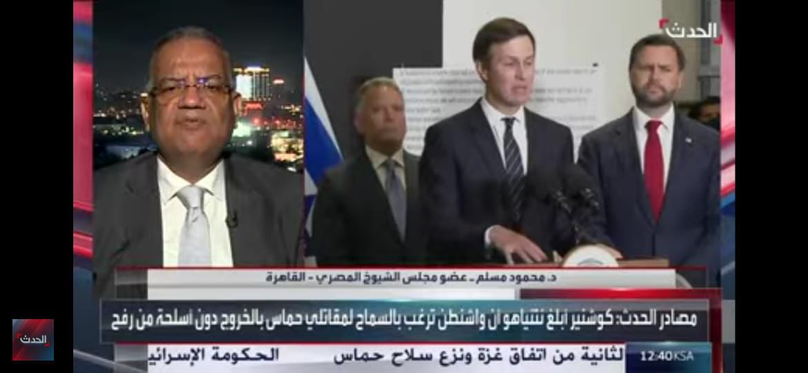 وشدد مسلم في لقاء مع قناة "الحدث" اليوم، على أن الضغوط الأمريكية هي الحل والضامن الوحيد لمنع إسرائيل من سيناريو عرقلة الاتفاق، ووقف ممارسات رئيس الوزراء الإسرائيلي بنيامين نتنياهو الذي لم يشبع من الدماء الفلسطينية على عامين ماضيين، مشيرًا إلى أن واشنطن مازالت حتى الآن مهتمة بالقضية الفلسطينية، لاسيما بعد زيارة الرئيس الأمريكي دونالد ترامب إلى شرم الشيخ وتوقيعه على اتفاق وقف الحرب، لافتًا إلى أنه لا يمر أسبوع إلا ويزور مسؤول أمريكي رفيع المستوى منطقة الشرق الأوسط، سواء كان ويتكوف أو كوشينر أو نائب الرئيس الأمريكي أو وزير الخارجية الأمريكية، ما يدل على أن الولايات المتحدة مهتمة بوقف الحرب والحفاظ على اتفاق شرم الشيخ.