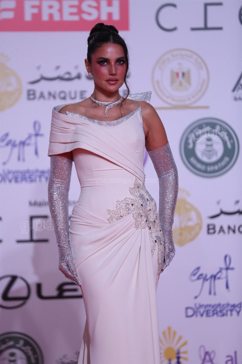 كما تألقت كذلك الفنانة سلمى أبو ضيف التي ظهرت بإطلالة راقية على السجادة الحمراء لحفل الافتتاح.