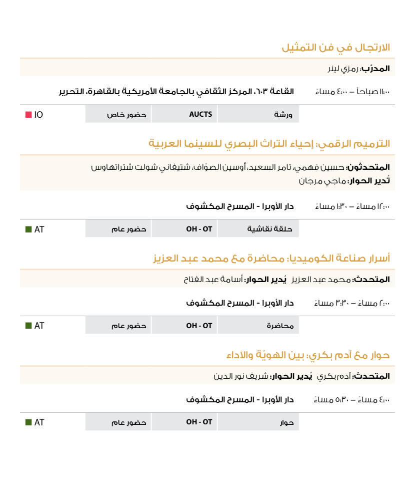 وتأتي فعاليات وندوات مهرجان القاهرة اليوم كالتالي: