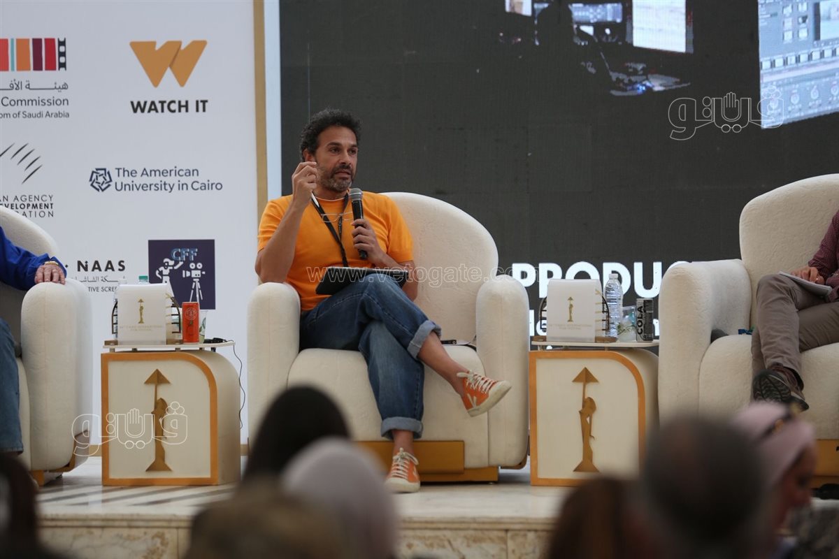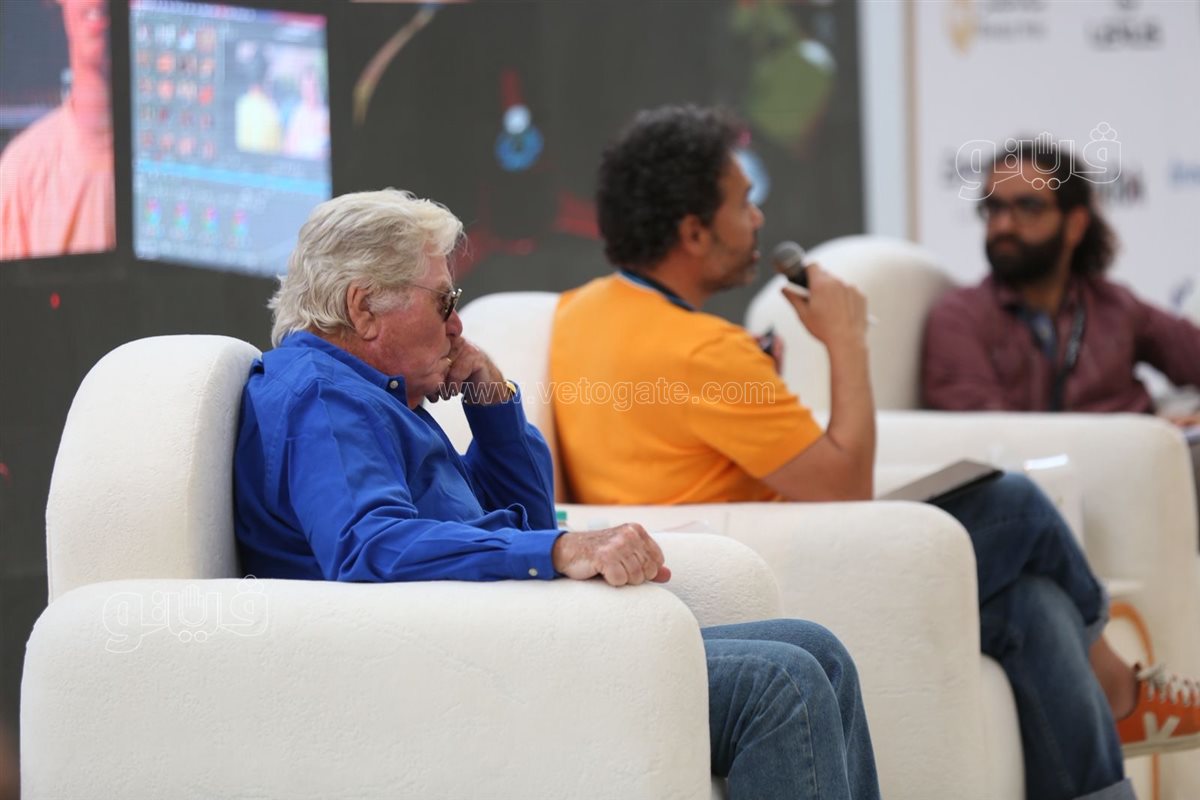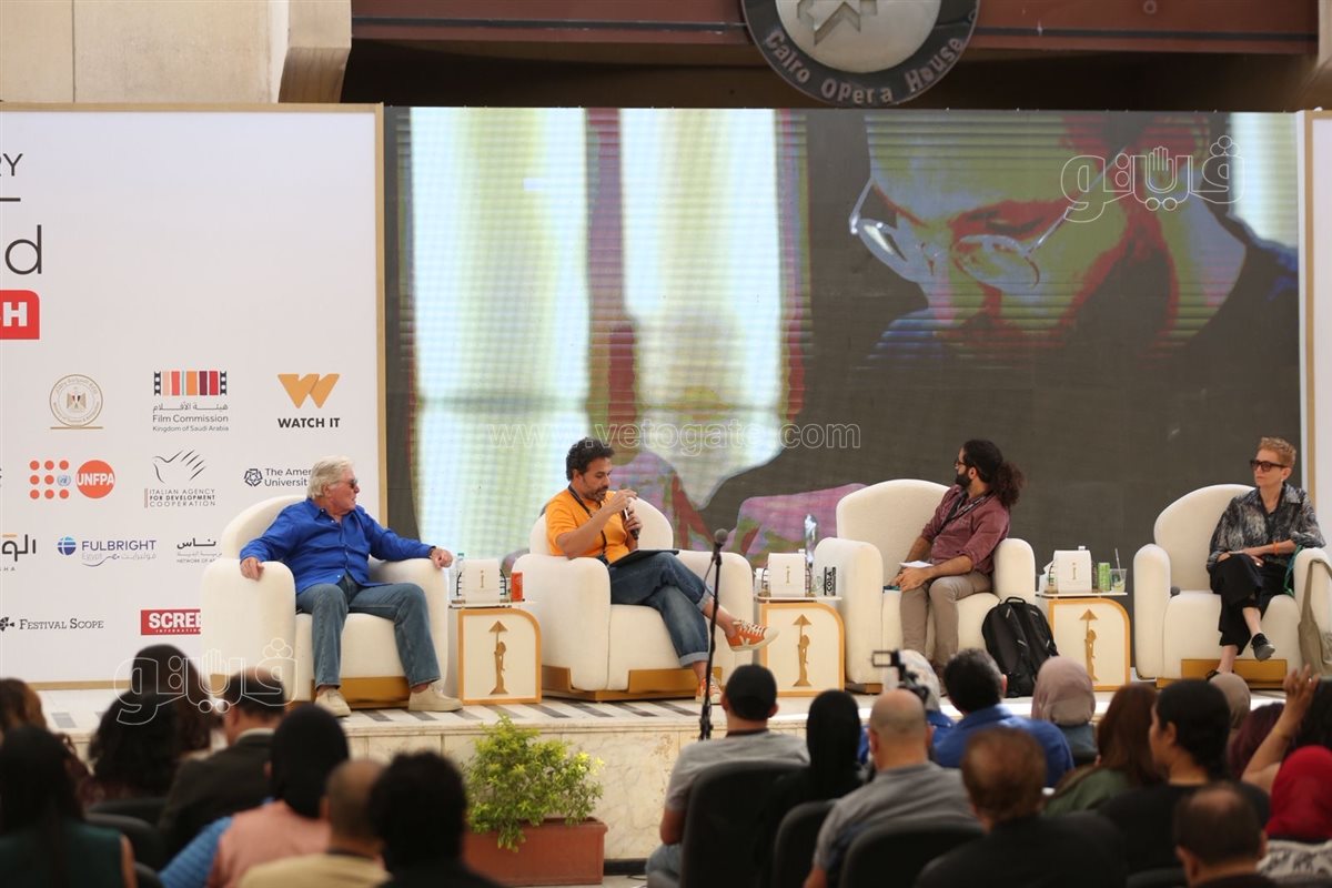 وشهد الجلسة الفنان حسين فهمي، وذلك بحضور تامر السعيد، أوسين الصواف، وشتيفاني شولت شتراتهاوس، وأدارت الحوار المخرجة ماجي مرجان.