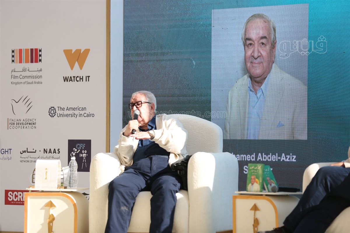 وفي بداية الندوة تحدث الفنان حسين فهمي رئيس مهرجان القاهرة السينمائي الدولي، عن علاقته بالمخرج محمد عبد العزيز والذي كرمه المهرجان بجائزة الهرم الذهبي لإنجاز العمر قائلا: “إنجاز العمر بيني وبين محمد.. احنا دخلنا المعهد مع بعض وكنا زملاء تختة واحدة وحبنا وعشقنا للسينما لا حدود له، وعملنا في التدريس، وعملنا فيلم مع بعض اسمه (انتبهوا ايها السادة) وهو من أهم أفلام العصر”.