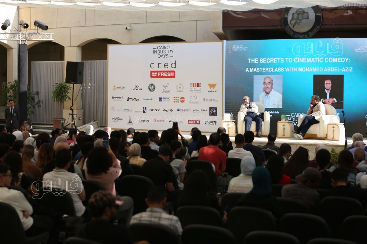 يعقد مهرجان القاهرة السينمائي الدولي حاليا ماستر كلاس للمخرج الكبير محمد عبد العزيز، وذلك على المسرح المكشوف بدار الأوبرا المصرية، ضمن فعاليات الدورة السادسة والأربعين من المهرجان، بحضور كوكبة من الفنانين وصناع السينما.