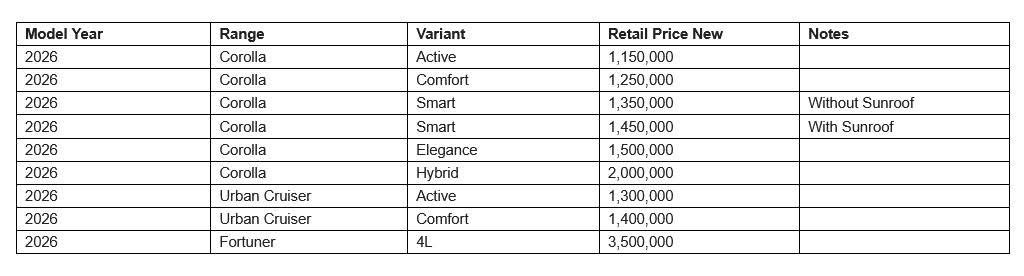 وأخطر الوكيل المحلي للعلامة التجارية تويوتا كافة الموزعين والتجار بأسعار سيارات تويوتا داخل السوق المصري، ومن المقرر العمل بالأسعار الجديدة بداية من اليوم الخميس 13 نوفمبر داخل المعارض المصرية