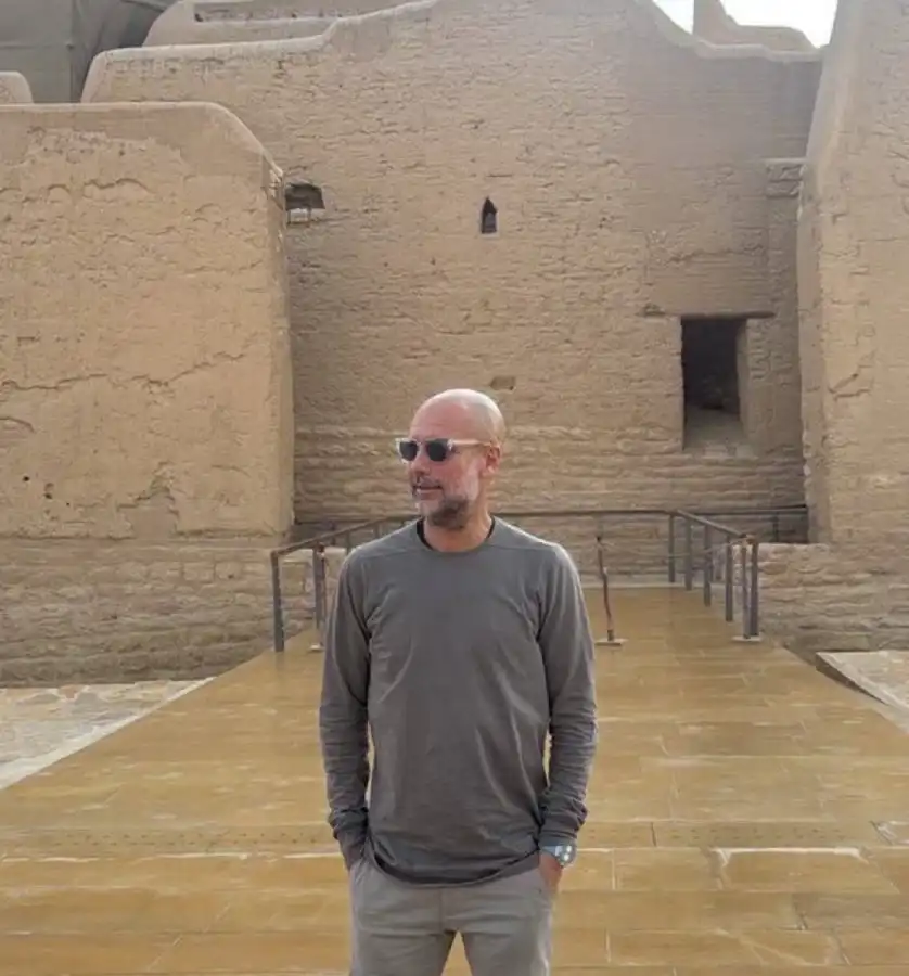 وانتشرت صورة للإسباني جوارديولا في منطقة الدرعية بالعاصمة السعودية الرياض على هامش إجازته.