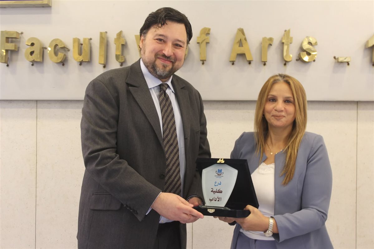 وفي ختام الزيارة، قامت العميدة بتسليم ضيف الكلية درعًا تذكاريًا، وسط جو من الود والاحترام المتبادل والتقدير الحقيقي للجهود الأكاديمية، وتم التقاط صور تذكارية لتوثيق هذه الخطوة الهامة نحو توطيد شراكات ثقافية وأكاديمية دولية.