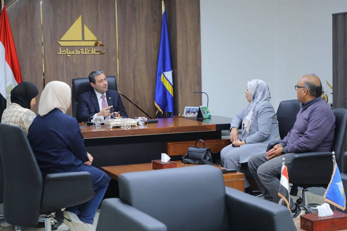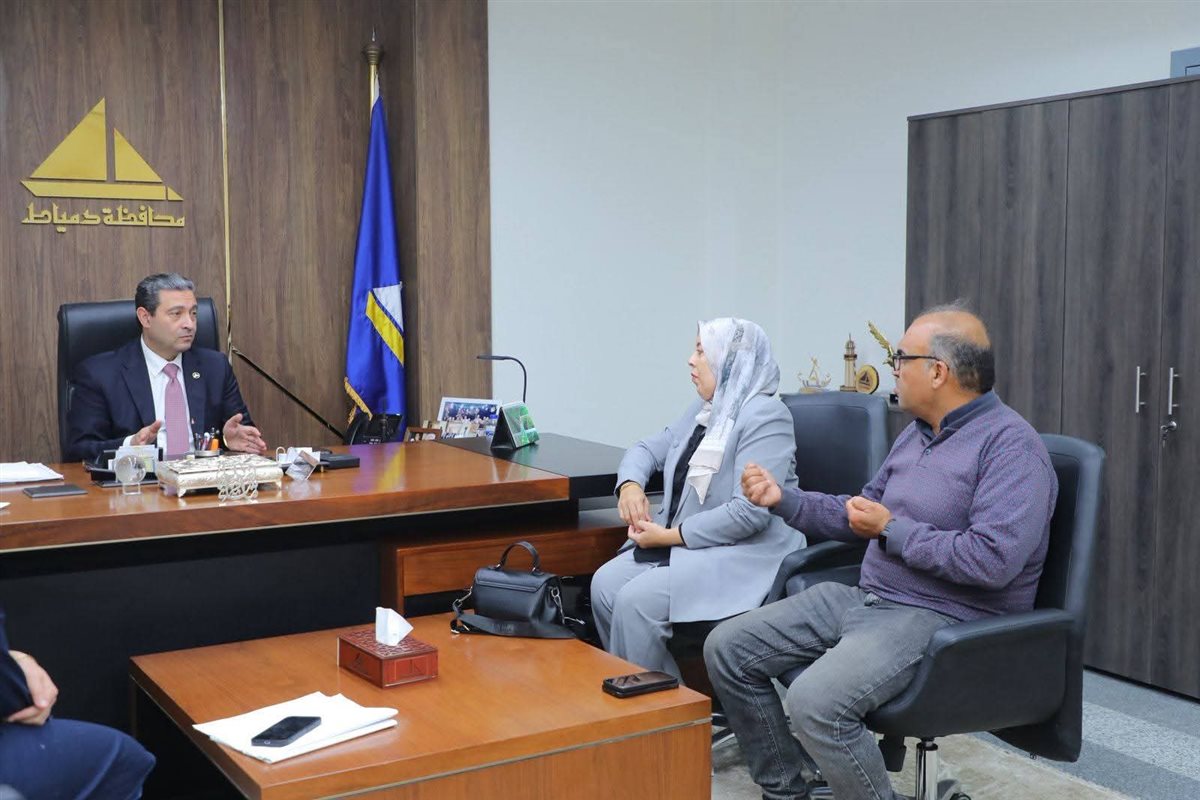 عقد الدكتور أيمن الشهابي محافظ دمياط اجتماعا مع المهندسة حنان صالح من الجهاز التنفيذي لتعمير سيناء والمهندس طارق بدوي مدير مديرية الطرق والنقل، لمناقشة خطة رصف طريق كفر الغاب - منشية ناصر.
