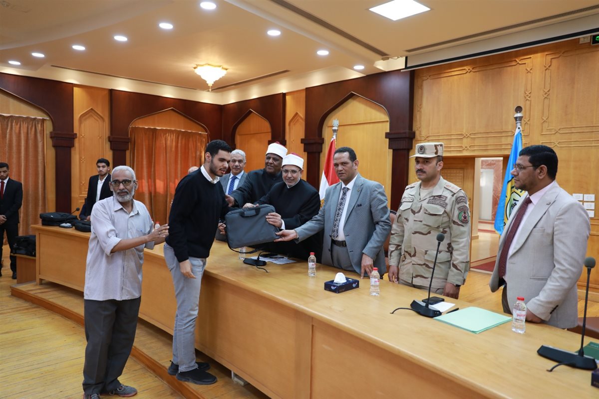 جاء ذلك بحضور الدكتور سلامة جمعة داود، رئيس الجامعة، والدكتور محمود صديق، نائب رئيس الجامعة للدراسات العليا والبحوث، والدكتور سيد بكري، نائب رئيس الجامعة لشئون التعليم والطلاب، والعميد حازم السيد الإمام، مدير إدارة التربية العسكرية بالجامعة، والدكتور أحمد كشك، مدير عام رعاية الطلاب بجامعة الأزهر.