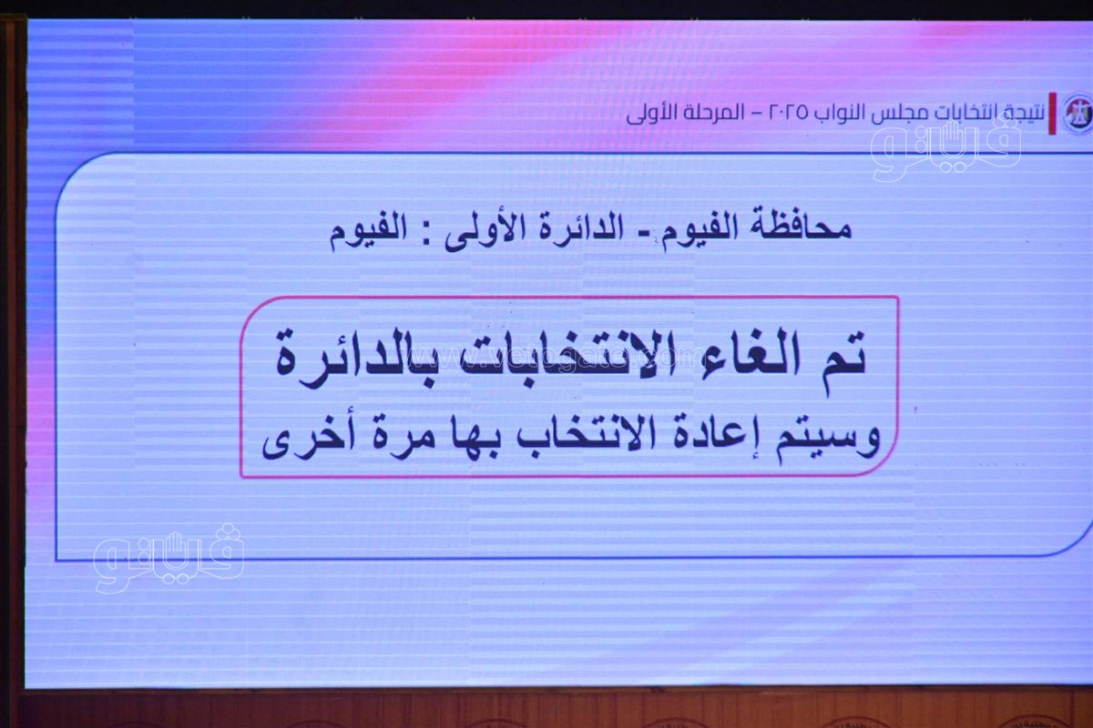 قررت الهيئة الوطنية للانتخابات إلغاء انتخابات مجلس النواب بشكل كامل في الدائرة الأولى الفيوم، وكذلك الدائرة الرابعة أبشواي بمحافظة الفيوم.