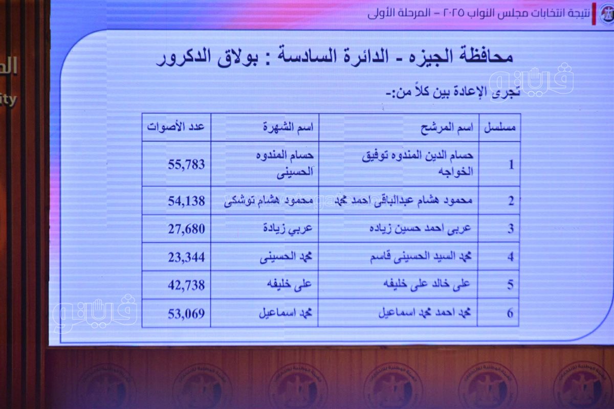 أعلنت الهيئة الوطنية للانتخابات إجراء جولة الإعادة بالدائرة السادسة بولاق الدكرور بانتخابات مجلس النواب بين حسام الدين المندوه ومحمود هشام عبد الباقي وعربي زيادة ومحمد الحسيني وعلى خليفة ومحمد إسماعيل.
