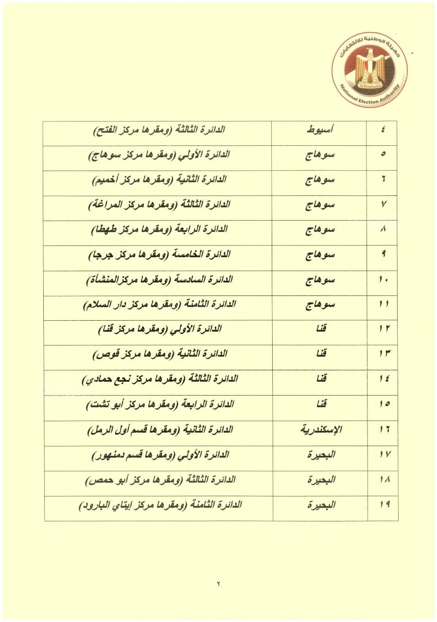 وشمل القرار الغاء الانتخابات في دائرة قسم أول الرمل بمحافظة الإسكندرية، والغاء الانتخابات كليا في دائرة قسم دمنهور ودائرة مركز ابو حمص ودائرة إيتاي البارود بمحافظة البجيرة.
