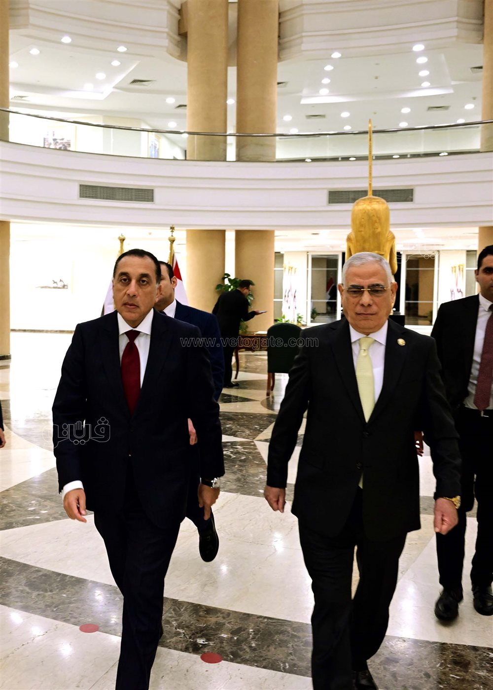 شارك مساء اليوم الدكتور مصطفى مدبولي، رئيس مجلس الوزراء، في فعاليات حفل تسليم النيابة العامة مضبوطات ذهبية للبنك المركزي المصري، الذي أقيم بمقر مكتب النائب العام بالقاهرة الجديدة، بحضور حسن عبد الله، محافظ البنك المركزي، وأحمد كجوك، وزير المالية، والمستشار/ عدنان فنجري، وزير العدل، والمستشار/ أحمد سعيد خليل، رئيس مجلس أمناء وحدة مكافحة غسل الأموال وتمويل الإرهاب، وطارق الخولي، نائب محافظ البنك المركزي للاستقرار المصرفي.