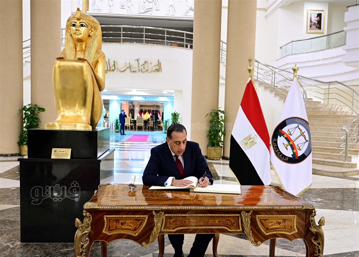 وفور وصوله، تم التقاط عدد من الصور التذكارية لرئيس مجلس الوزراء مع المستشار النائب العام، والوزراء، وكذلك مع المستشارين الحضور، وعقب ذلك قام الدكتور مصطفى مدبولي بالتوقيع في سجل كبار الزوار، وسطّر كلمة جاء فيها: "لي عظيم الشرف والفخر التواجد اليوم في صرح مصر الشامخ مبنى النائب العام، وأن أشرُف بلقاء معالي المستشار الجليل/ محمد شوقي، النائب العام، وزملائه الأفاضل.. مع تمنياتي لكم بدوام النجاح والتقدم".