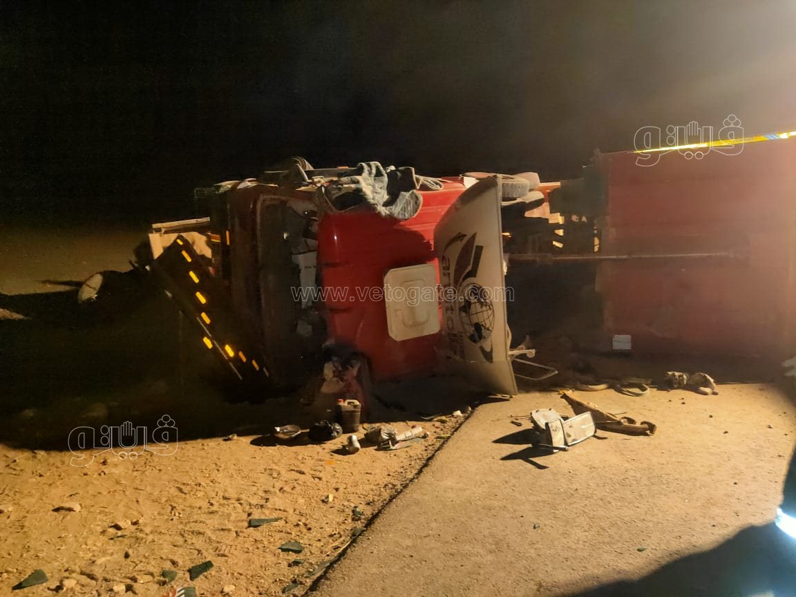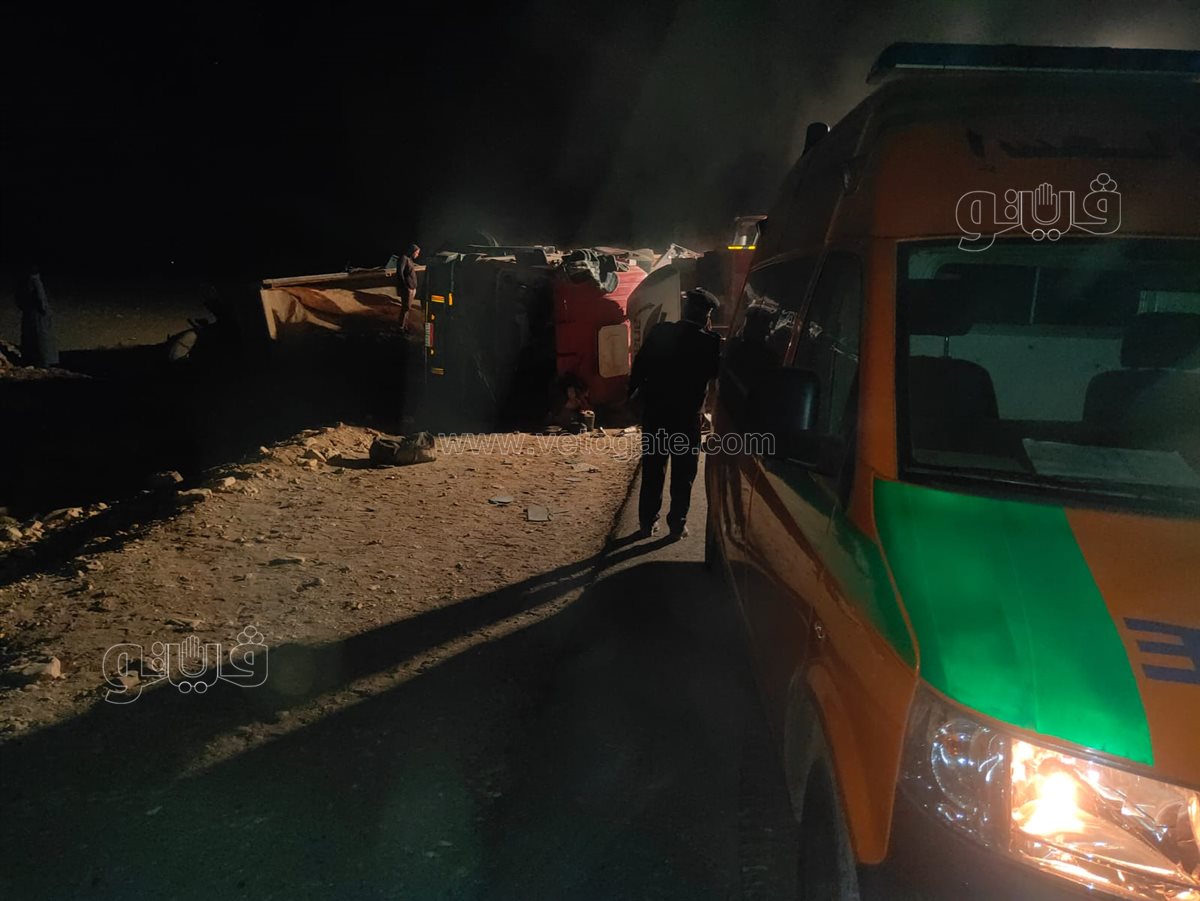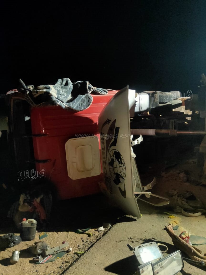 مشهد مروع، الصور الأولى لحادث انقلاب سيارتي تريلا بصحراوي الأقصر الشرقي