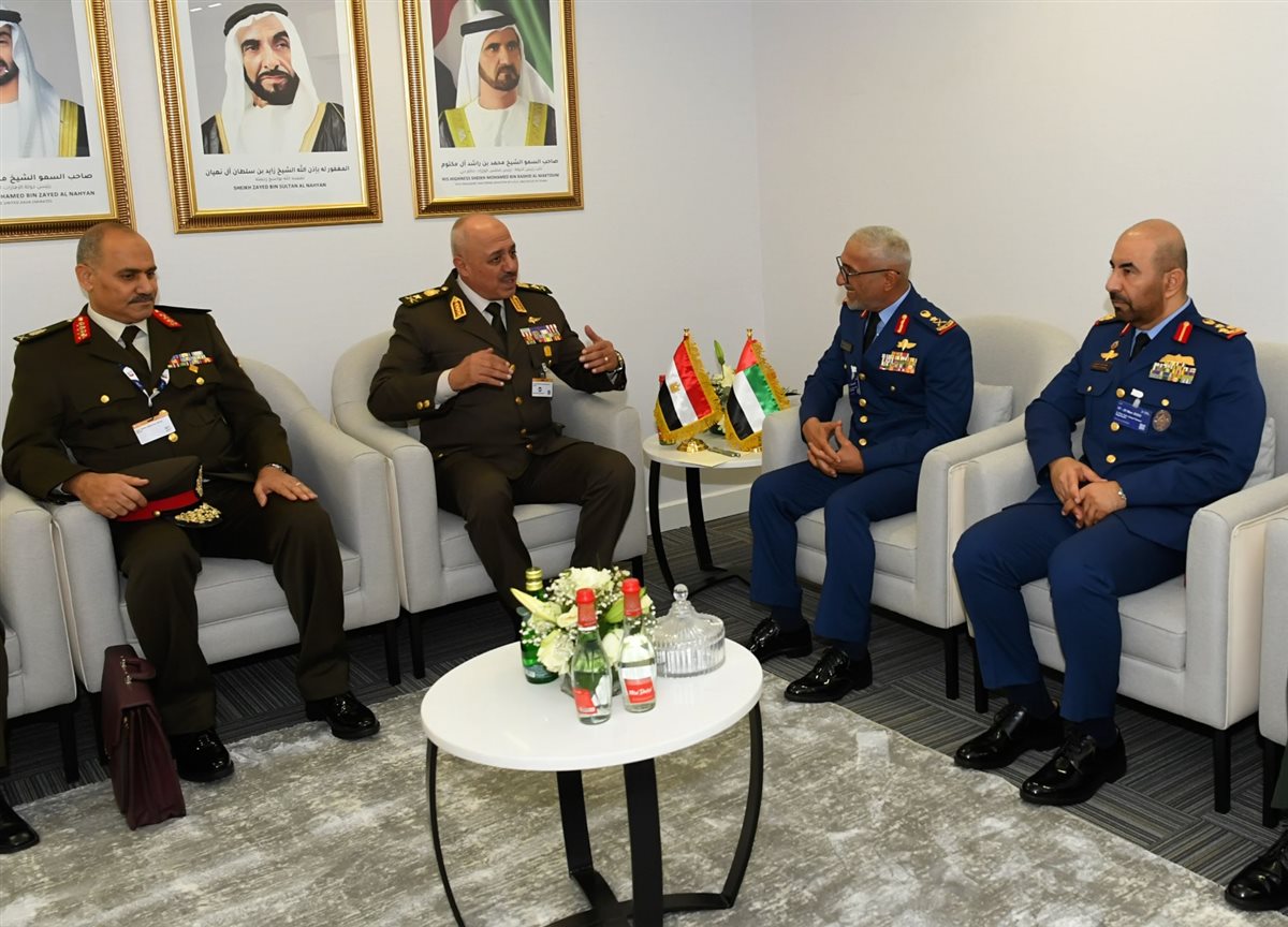 وعلى هامش فعاليات المعرض التقى الفريق أحمد خليفة رئيس أركان حرب القوات المسلحة، الفريق الركن مهندس عيسى سيف محمـد المزروعى رئيس أركان القوات المسلحة الإماراتية، وتناول اللقاء مناقشة عدد من الموضوعات ذات الاهتمام المشترك وسبل تعزيز علاقات التعاون العسكرى بين القوات المسلحة المصرية والإماراتية.