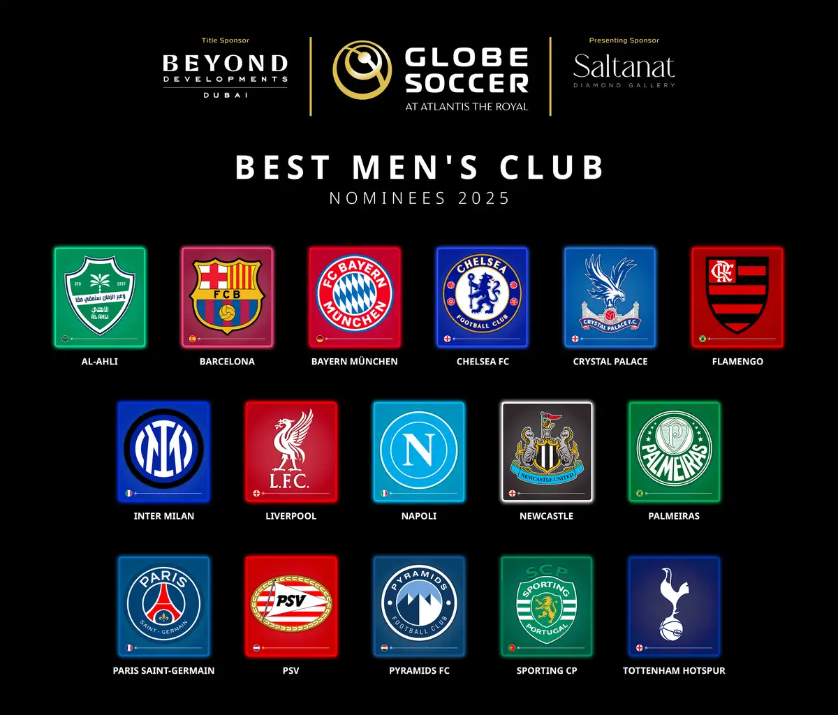 جلوب سوكر 2025، تواجد بيراميدز في قائمة المرشحين للجوائز لعام 2025 كأفضل نادٍ للرجال بجوار كبار أوروبا، فيما غاب ريال مدريد عن الترشيح.