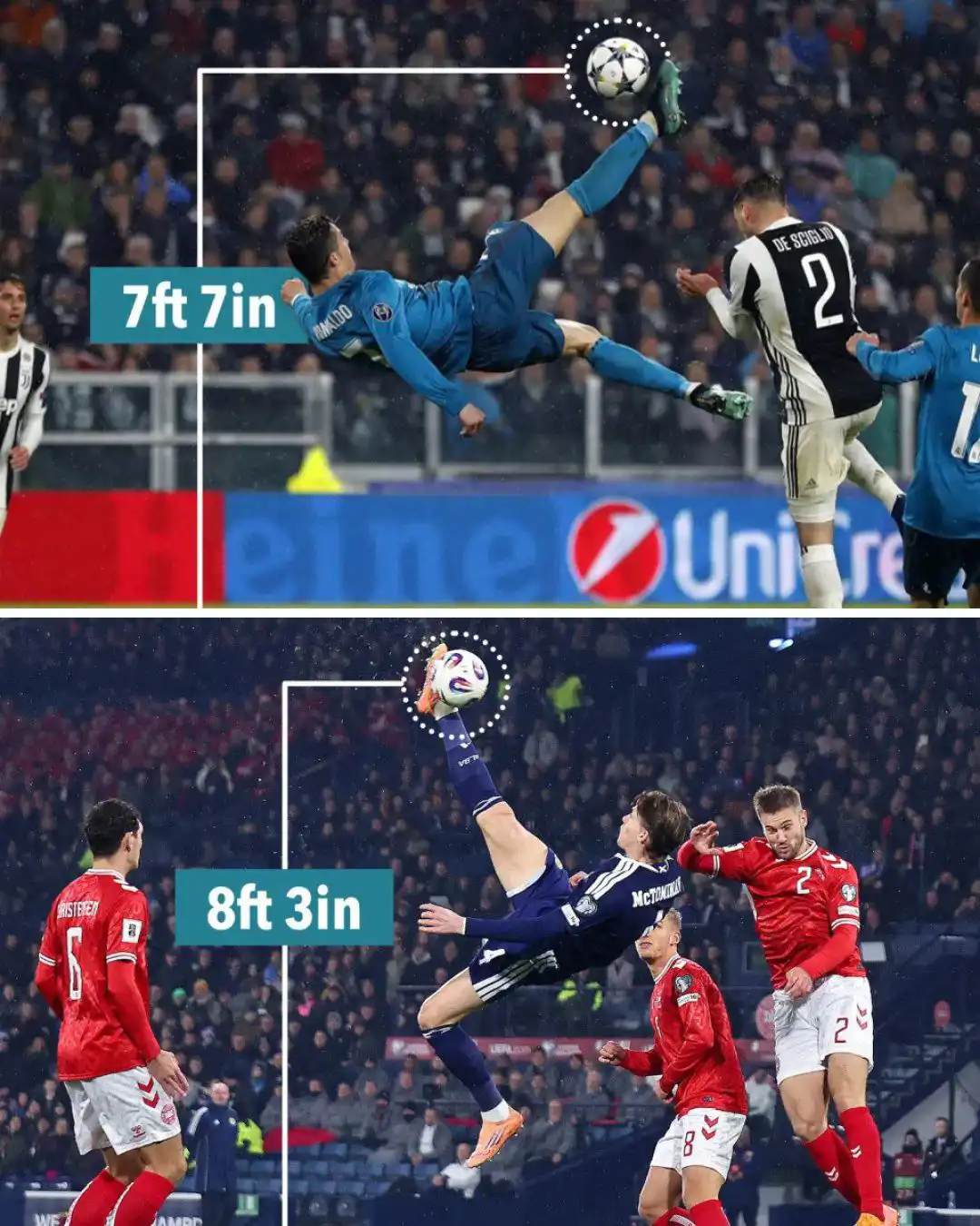 وبحسب تقارير صحفية إسكتلندية فإن ارتفاع قفزة مكتوميناي نجم مانشستر يونايتد الإنجليزي السابق في الهواء وصل إلى 8 أقدام متفوقا على رقم فريد للبرتغالي كريستيانو رونالدو بهدفه الشهير أمام يوفنتوس.