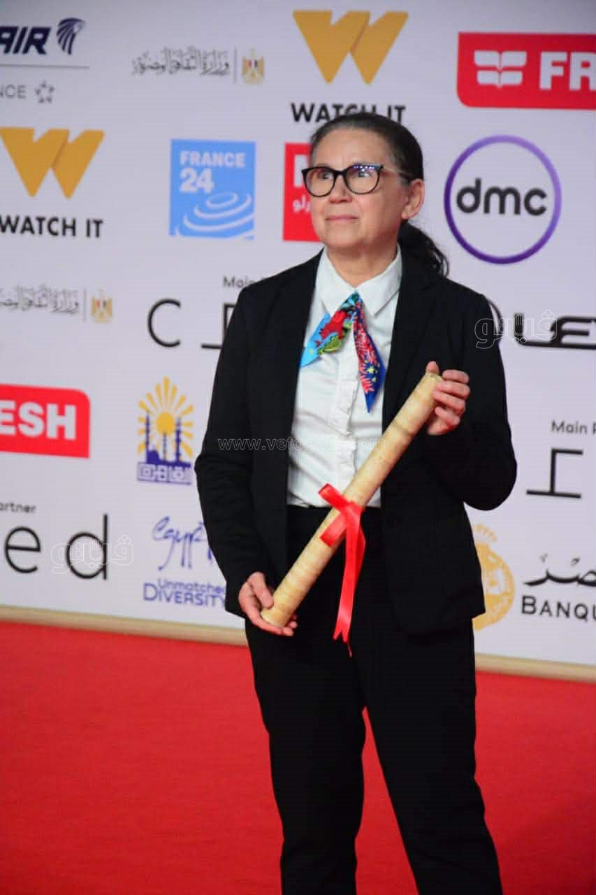 كرم مهرجان القاهرة السينمائي في دورته ال 46، المخرجة العالمية إلديكو إنيدي مخرجة فيلم صديق صامت على السجادة الحمراء في آخر أيام فعاليات المهرجان.