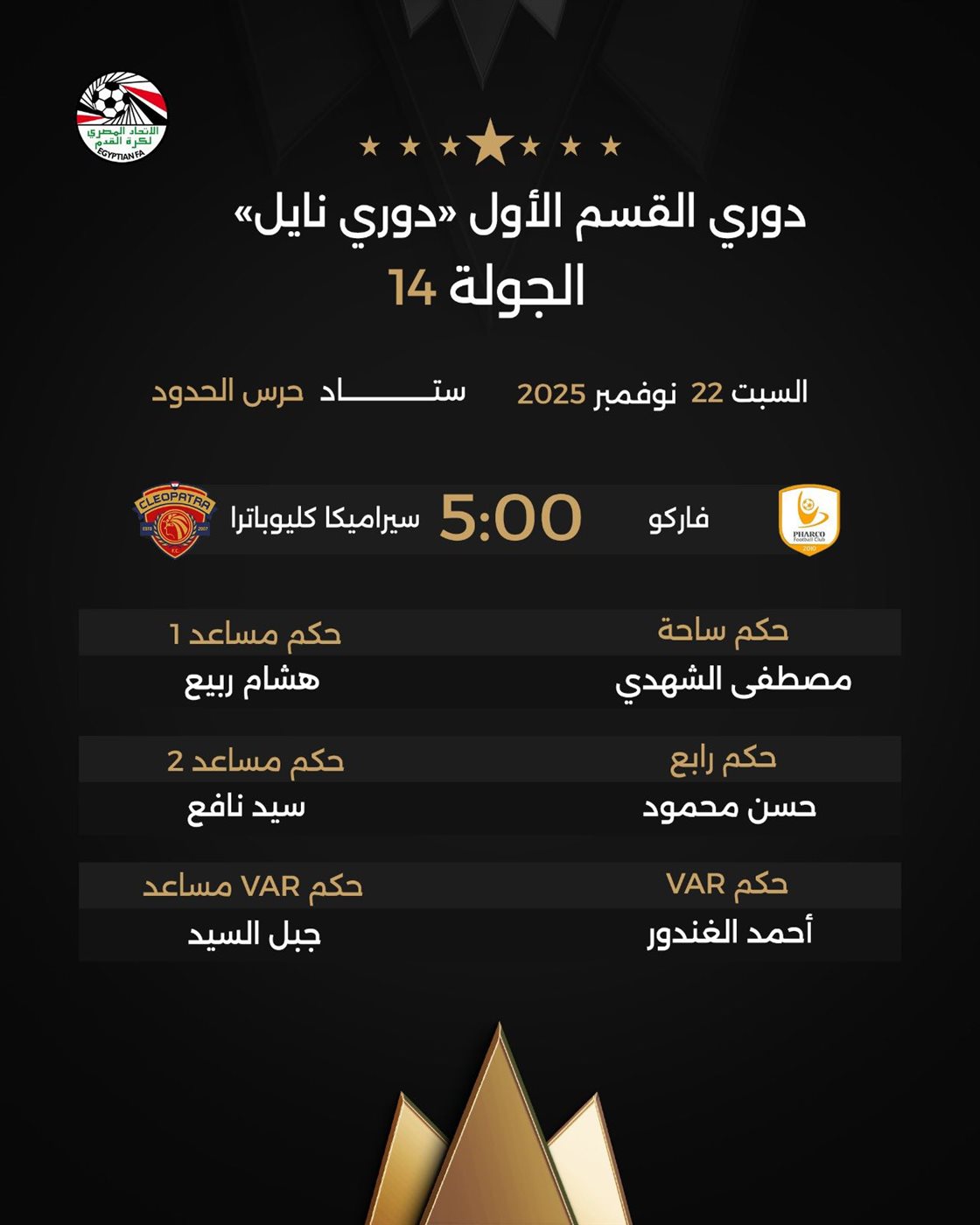 حكام مباراة فاركو ضد سيراميكا كليوباترا
