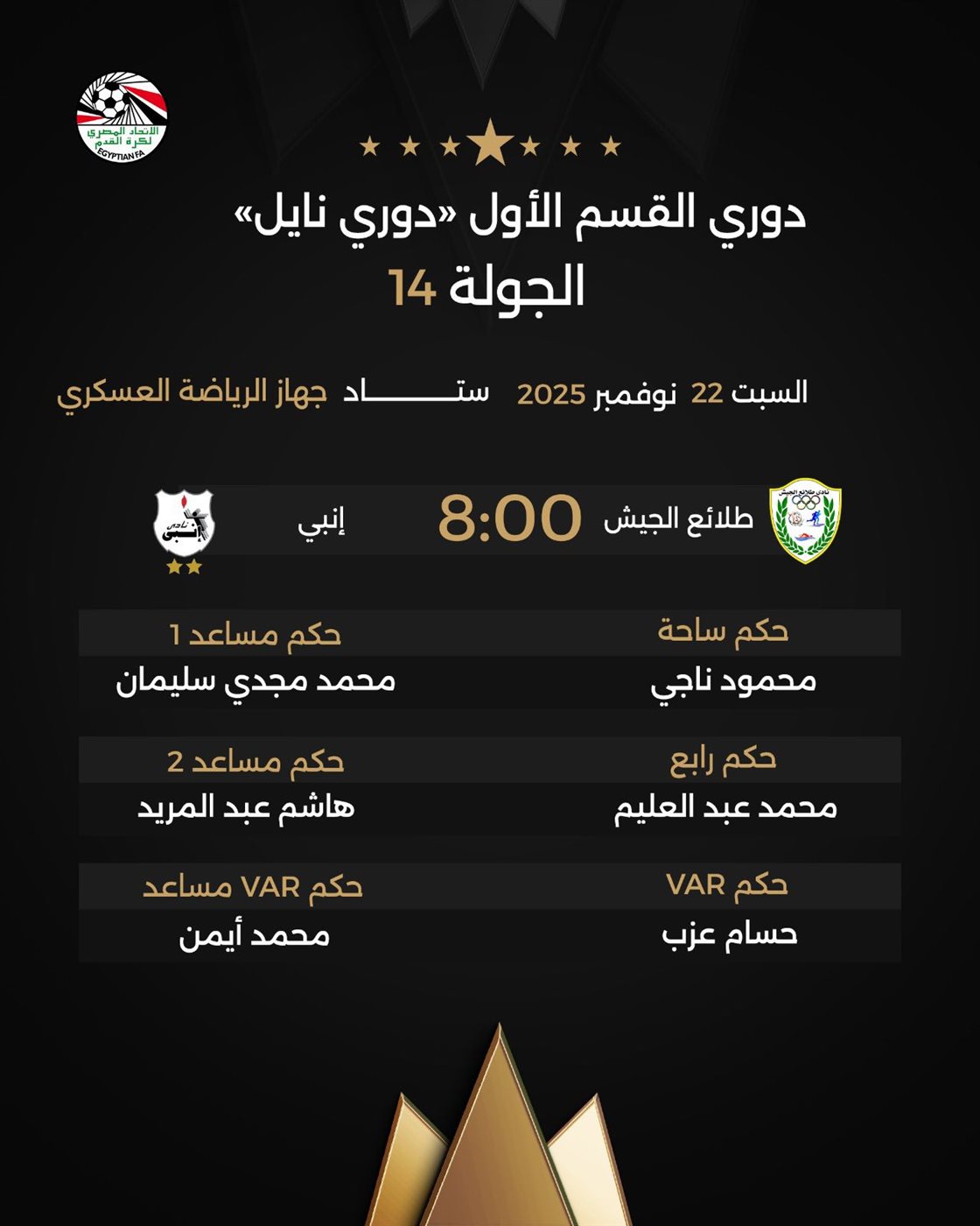 - طلائع الجيش ضد إنبي - الساعة 8 مساء - إستاد جهاز الرياضة.