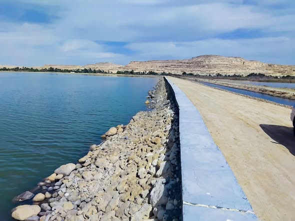 كما تم الإنتهاء من حفر عدد ١٢ بئرا عميقة لإنتاج المياه العذبة من خزان الحجر الرملي النوبي للخلط مع مياه الآبار السطحية، وفي المقابل تم غلق العديد من الآبار الجوفية والتى كانت تسحب المياه من الخزان الجوفى السطحي بشكل جائر، كما تم تنفيذ أعمال لتقوية وتعلية وتدعيم عدد (٤) جسور حول بحيرة سيوة بغرض تقليل الأضرار الناتجة عن ارتفاع مناسيب المياه خلال السنوات الماضية والتى أثرت سلبًا على بعض الأراضى الزراعية والمبانى والمنشآت السياحية المطلة على البحيرة.