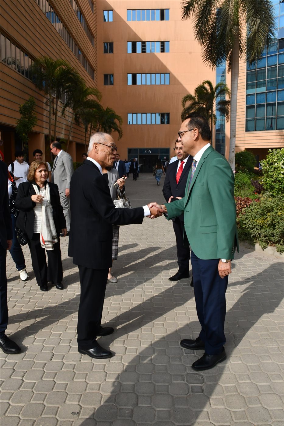 زار السفير إيواي فوميو، سفير اليابان بالقاهرة، الجامعة الألمانية بالقاهرة، حيث كان في استقباله الدكتور أشرف منصور، رئيس مجلس أمناء الجامعة، بحضور الدكتور ياسر حجازي، رئيس الجامعة.