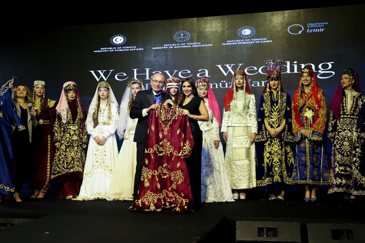 أُقيم عرض أزياء زفاف تركي تقليدي خاص وحفل موسيقى احتفالًا بالذكرى المئوية للعلاقات الدبلوماسية التركية المصرية.