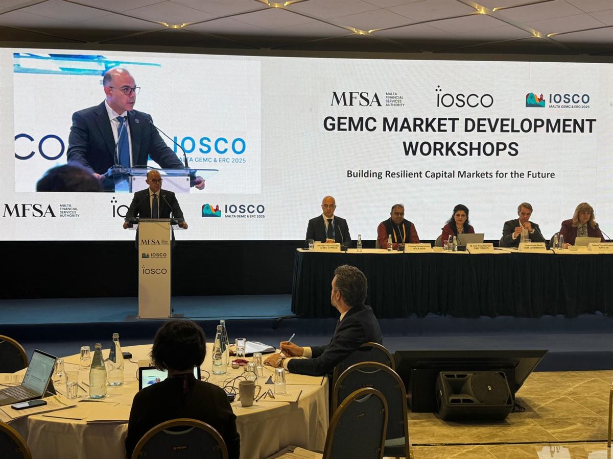شارك الدكتور محمد فريد، رئيس الهيئة العامة للرقابة المالية ونائب رئيس مجلس إدارة المنظمة الدولية لهيئات الرقابة على أسواق المال (IOSCO)، في فعاليات ورش عمل تطوير الأسواق التي نظمتها لجنة الأسواق النامية والناشئة (GEMC) تحت عنوان "بناء أسواق رأس مال مرنة للمستقبل"، وذلك بالتزامن مع ترؤسه اجتماعات اللجنة المنعقدة في مالطا.