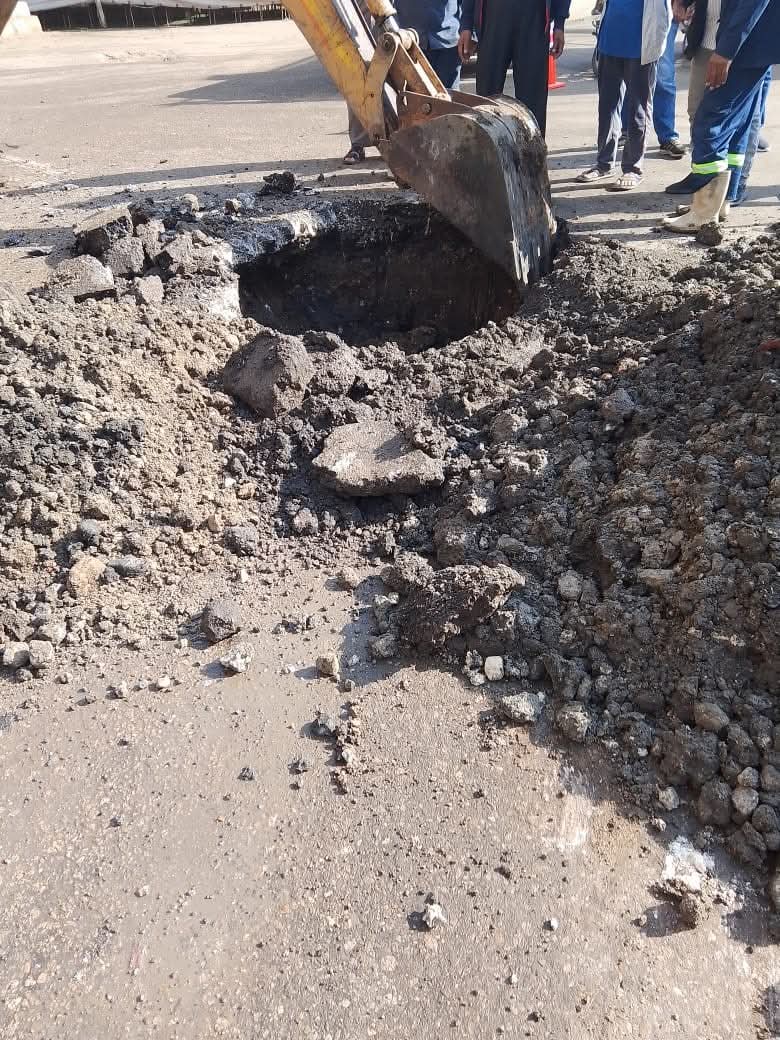رئيس المدينة اكتشفه بالصدفة، هبوط أرضي مفاجئ أمام مستشفى ميت سلسيل بالدقهلية (صور)
