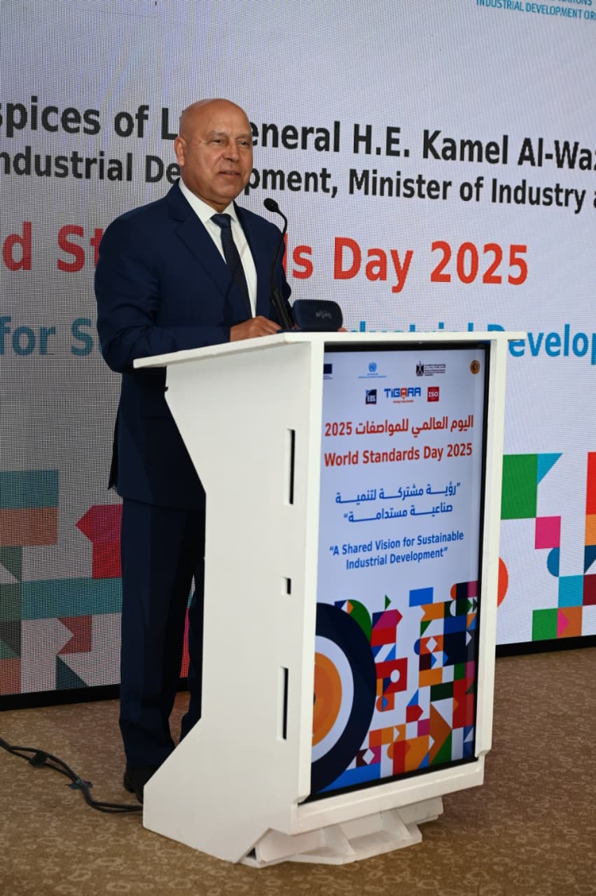 انطلقت فعاليات احتفالية اليوم العالمي للمواصفات، والتي نظمتها هيئة المواصفات والجودة بالتعاون مع مكتب منظمة الأمم المتحدة للتنمية الصناعية "يونيدو" في مصر، وذلك بدعم من برنامج تجارة الممول من الاتحاد الأوروبي، وبحضور الفريق مهندس كامل الوزير، نائب رئيس مجلس الوزراء للتنمية الصناعية وزير الصناعة والنقل.