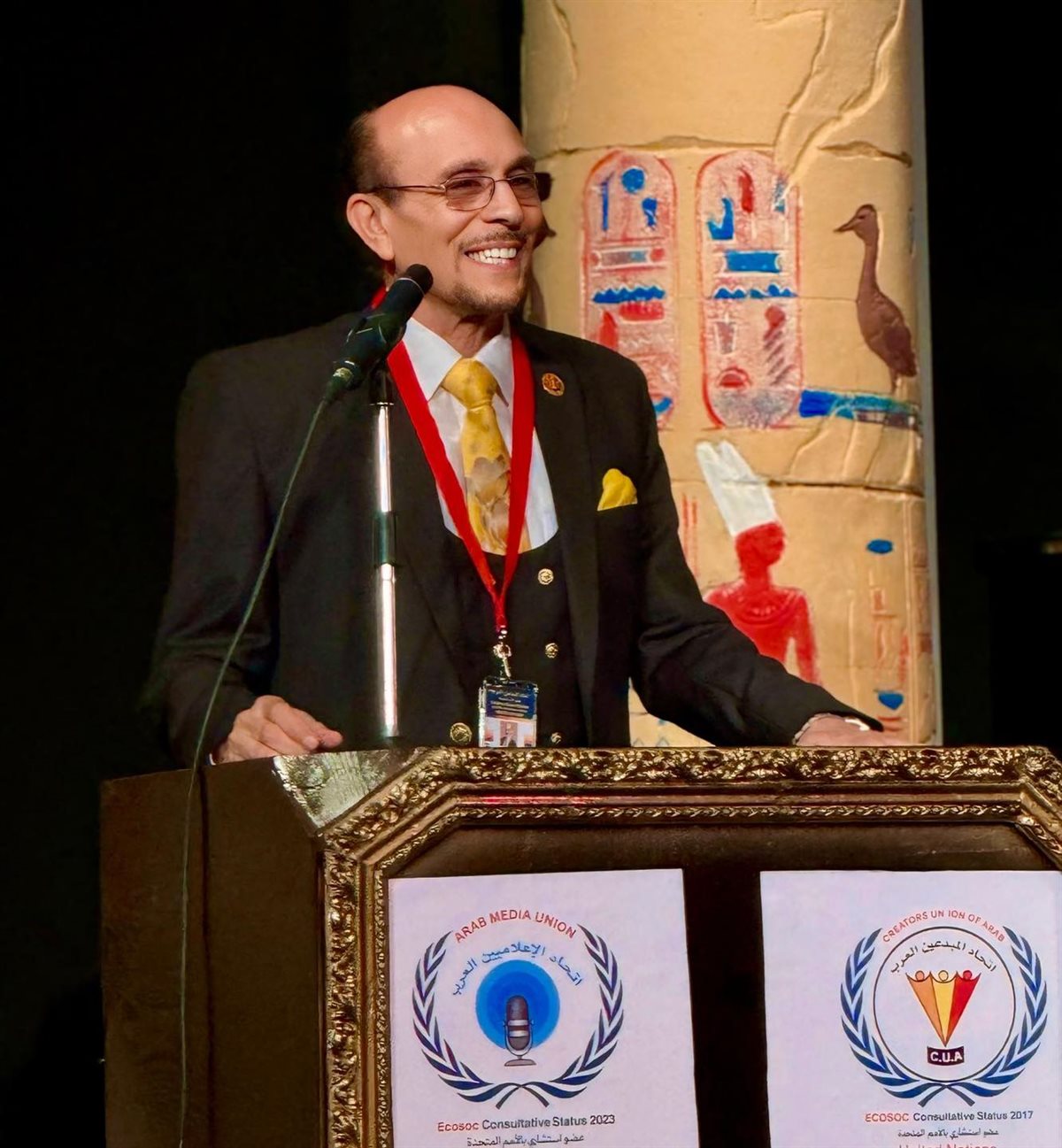وفي كلمته قال الدكتور أحمد نور، إن تكريم الفنان محمد صبحي هو تكريم لقيمة فنية وفكرية صنعت تأثيرًا حقيقيًا في الوعي العربي، وبصمة ثقافية مؤثرة، فحضوره الإبداعي ليس مجرد إنتاج فني، بل عملية بناء ثقافي تمتد أثرها لأجيال.. ويعتز الاتحاد بأن يضع اسمه ضمن قافلة الرواد الذين يحملون مسؤولية الإبداع كرسالة حضارية وإنسانية مستدامة وذلك من خلال منحه عضوية الاتحاد واعتماده سفيرًا له بالأمم المتحدة».