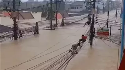 مشاهد غير مسبوقة تُظهر سكانا يضطرون للتنقل عبر الأسلاك الكهربائية