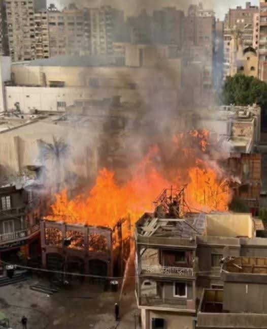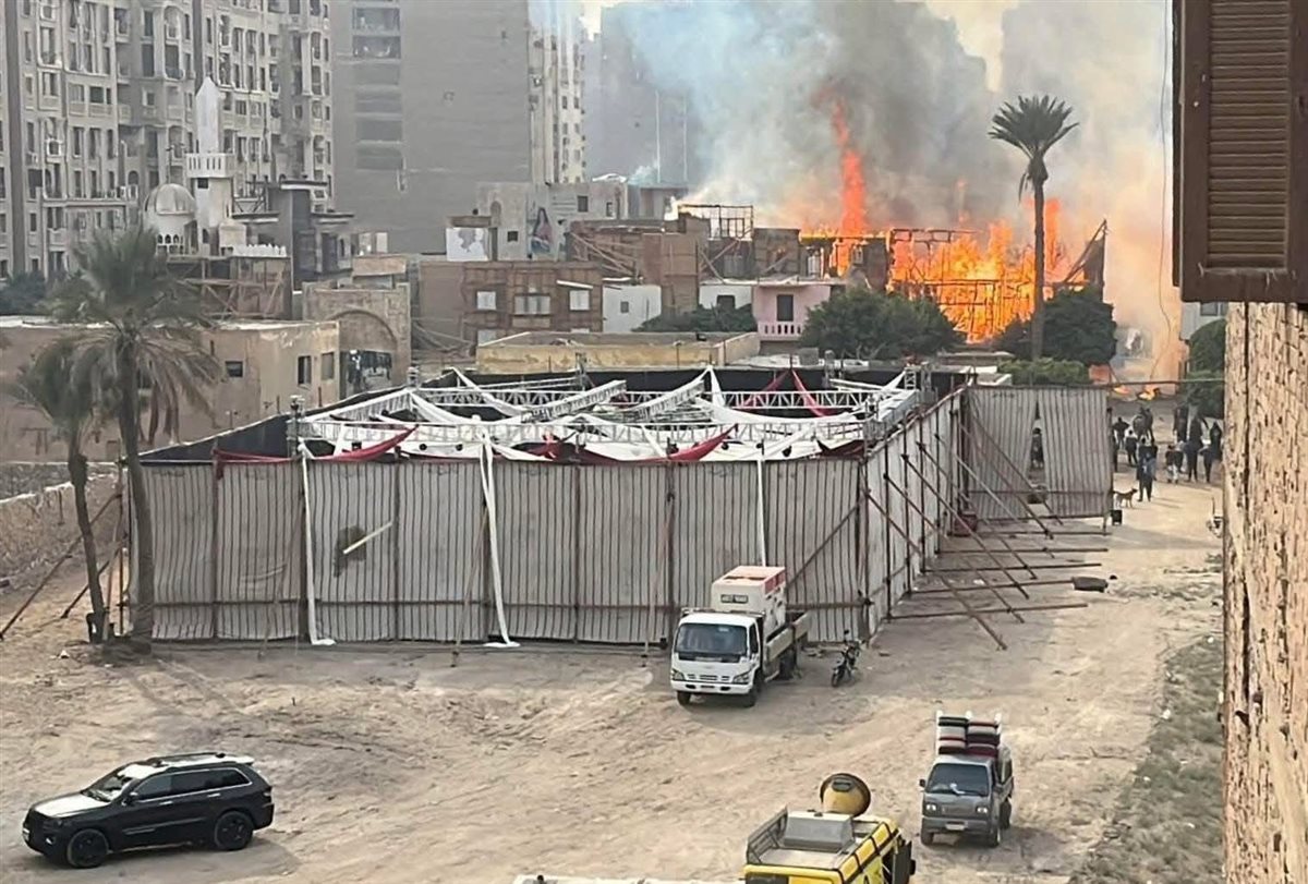 صور متداولة عن حريق ديكور مسلسل رمضاني باستوديو مصر