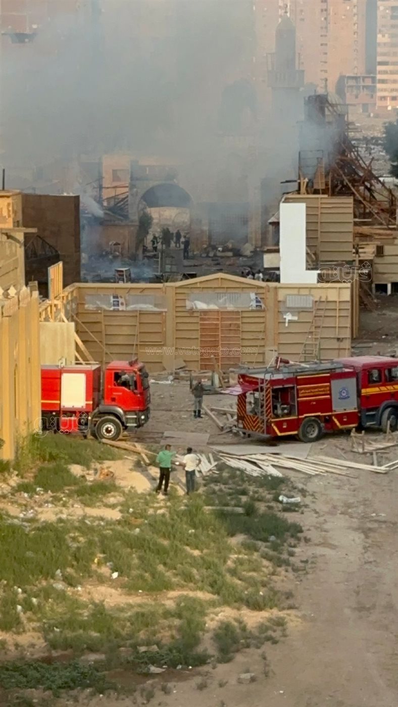 وأوضحت المعاينة أن الحريق اندلع في الأخشاب والديكورات الخاصة بالتصوير، وجارٍ العمل على السيطرة على النيران ومنع امتدادها لباقي استوديوهات التصوير.