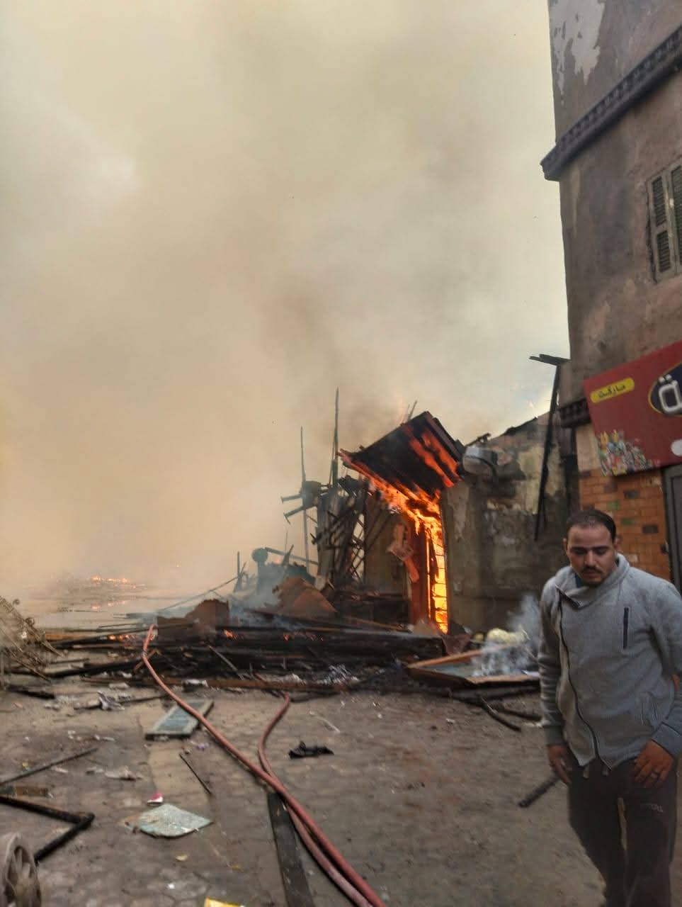 وأوضح المحافظ أن الحريق نشب في ديكورات منطقة التصوير وانتقل على الفور قوات الحماية المدنية التي تعاملت بكفاءة عالية مع الموقف، حيث تم الدفع بخمس سيارات إطفاء نجحت في محاصرة النيران ومنع امتدادها للعقارات المجاورة.