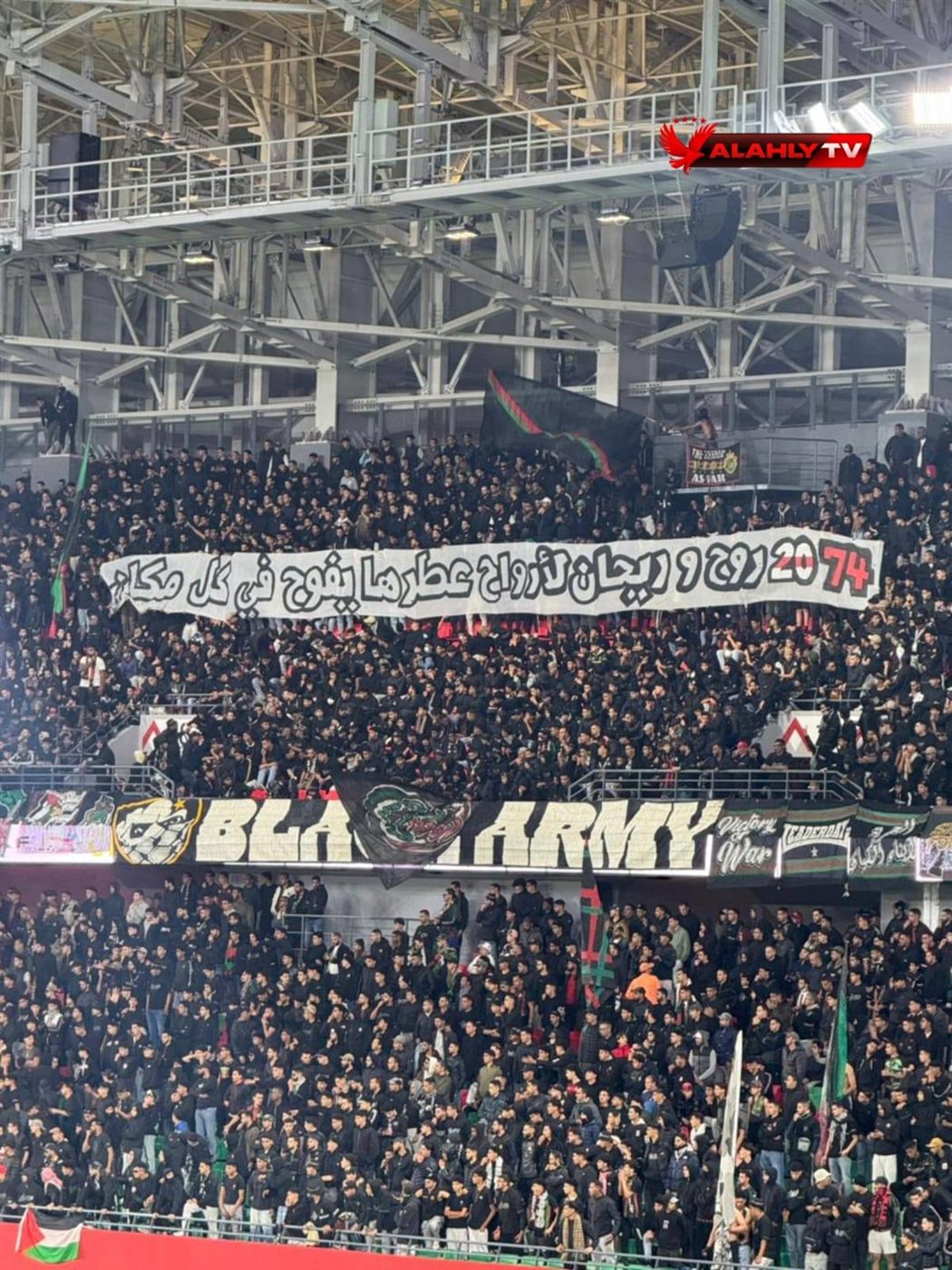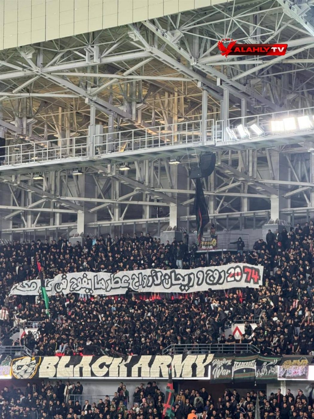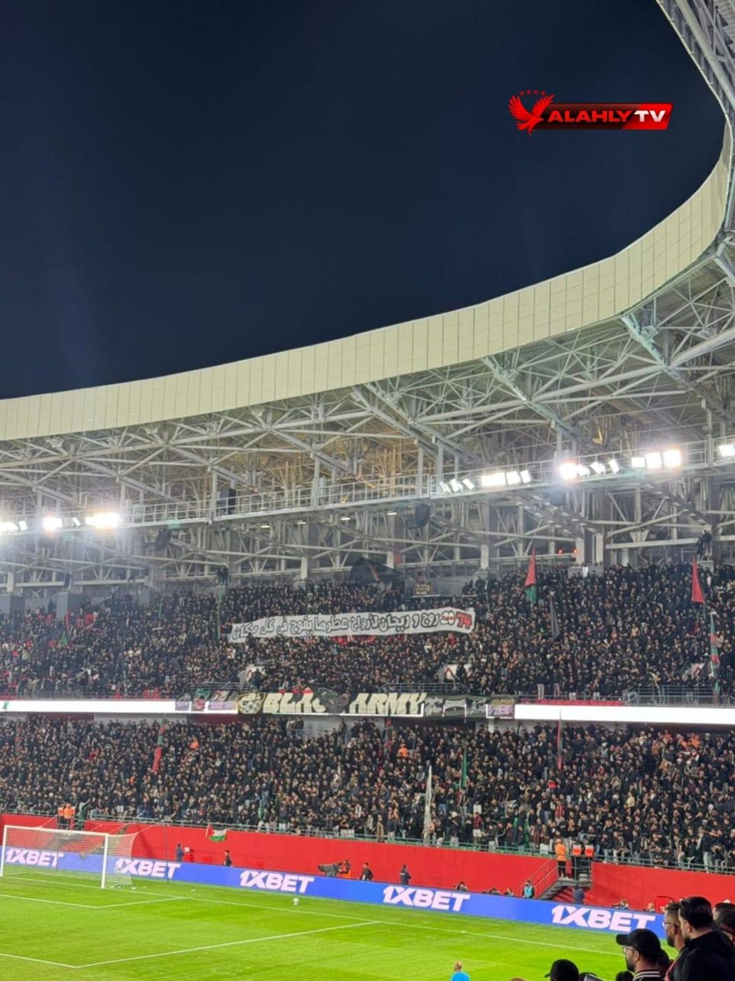 جماهير الجيش الملكي ترفع لافتة مؤثرة لتكريم شهداء الأهلي والزمالك