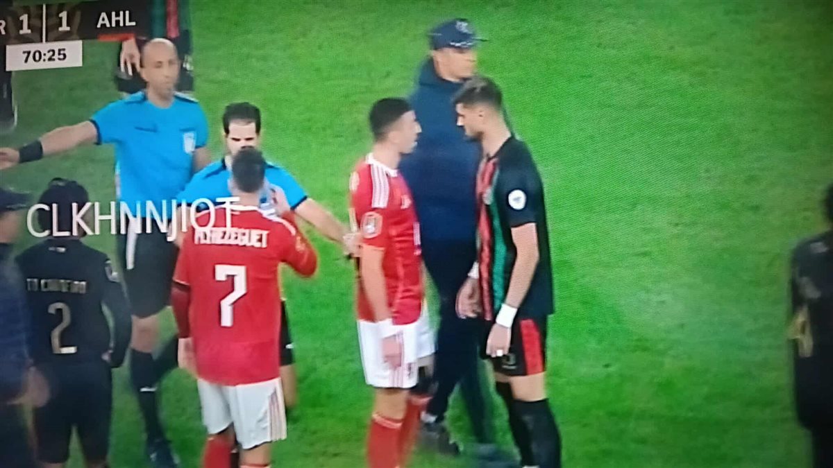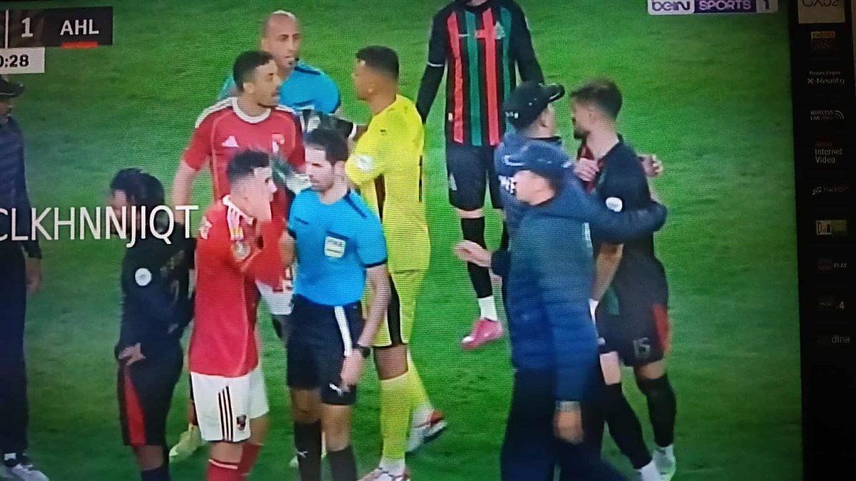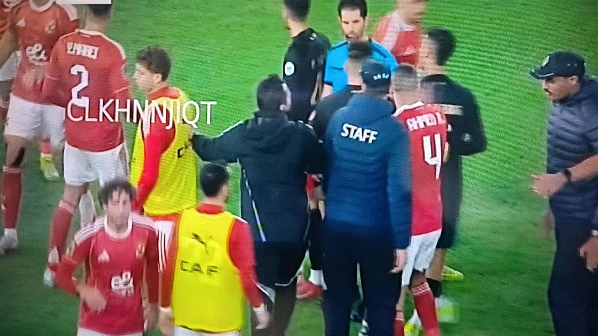 ودخل لاعبو الفريقين في مشادة، بعد إلغاء هدف لصالح الجيش الملكي بداعي التسلل، لتلقي الجماهير المغربية زجاجات على لاعبي الأهلي ليدخل بعدها لاعبي الفريق في مشادة قوية.