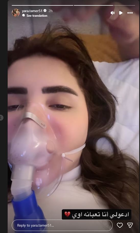 ونشرت يارا تامر مقطع فيديو في إستوري لها عبر حسابها على موقع إنستجرام، أثناء خضوعها لجلسات التنفس الصناعي وعلق قائلة: ادعوا لي أنا تعبانة أوي".