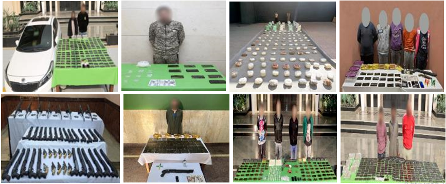 وتم العثور بحوزتهم على أكثر من 1.3 طن من المواد المخدرة المتنوعة (حشيش – شابو – هيدرو) و69 قطعة سلاح ناري بينها بنادق آلية وخرطوش وأفراد محلية الصنع، وتُقدّر القيمة المالية للمضبوطات بنحو 102 مليون جنيه.