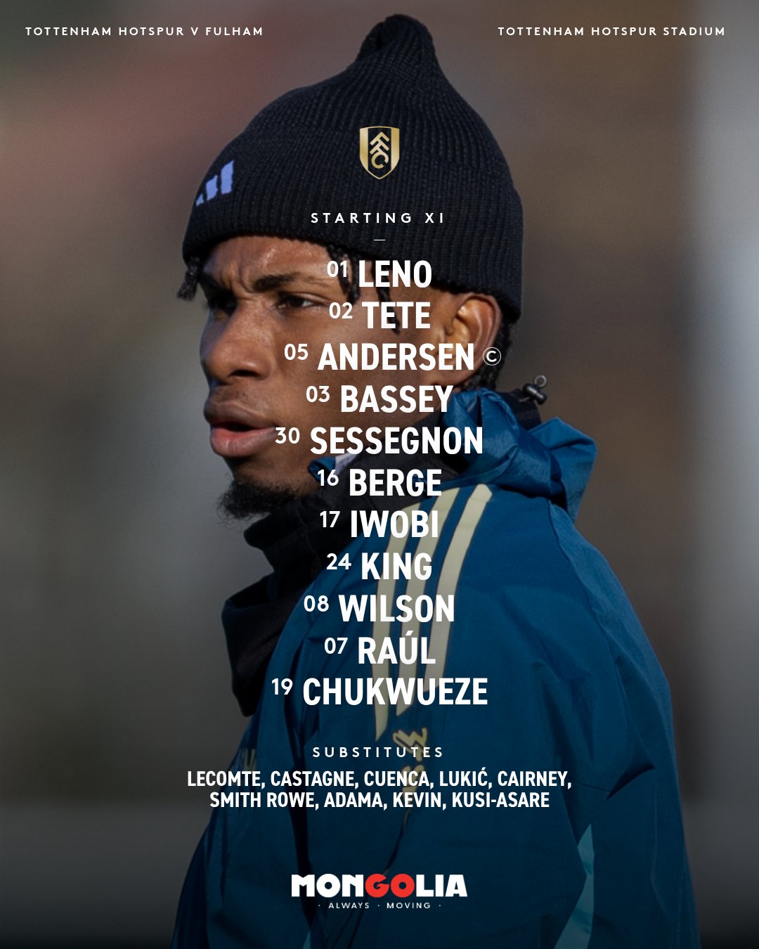 أعلن مدربا فريقي توتنهام وفولهام عن تشكيل الفريقين للمباراة التي تجمعهما، مساء اليوم السبت، ضمن لقاءات الجولة 13 من الدوري الإنجليزي الممتاز، على ملعب السبيرز.