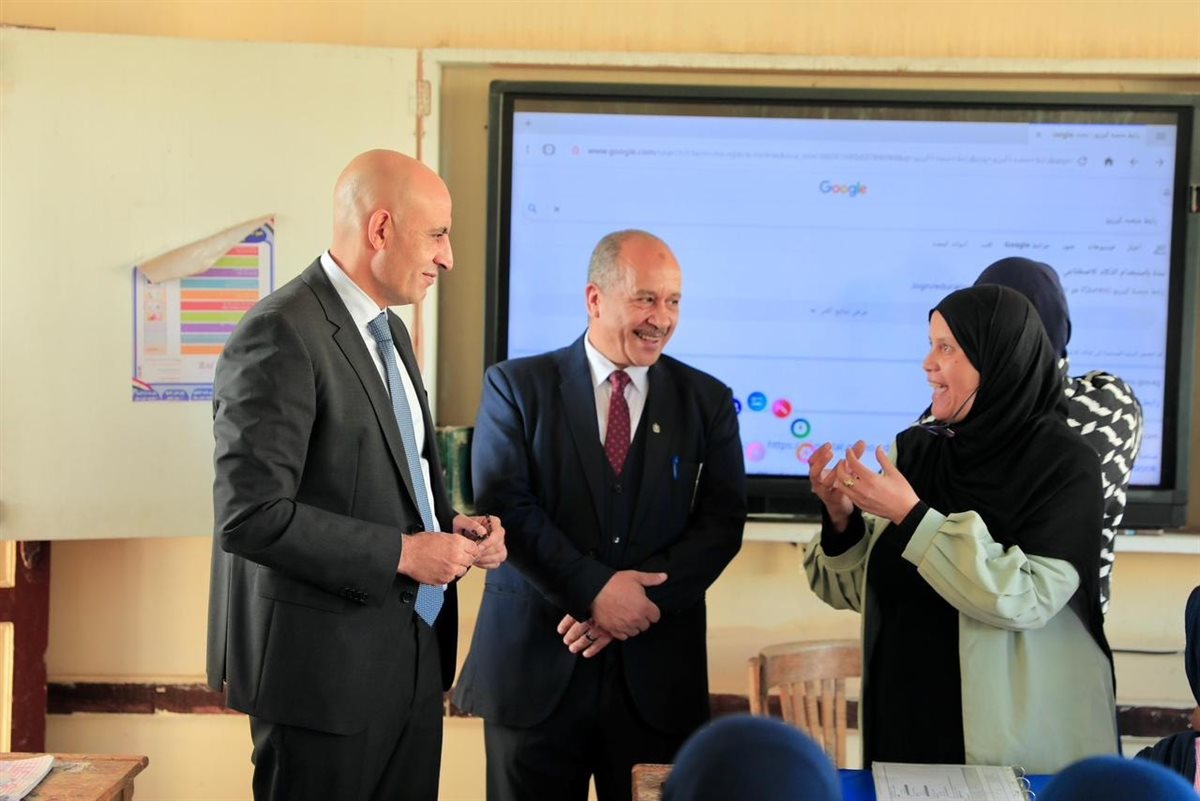 ثم توجه الوزير محمد عبد اللطيف لمدرسة "إمام ناصف الثانوية بنات" بإدارة الزرقا التعليمية والتى تضم عدد ١٢٦٤ طالبة، وخلال تفقد المدرسة تحاور الوزير مع عدد من الطالبات داخل فصول الصف الأول الثانوي، واستمع إلى آرائهن حول مدى استفادتهن من مادة البرمجة والذكاء الاصطناعي.