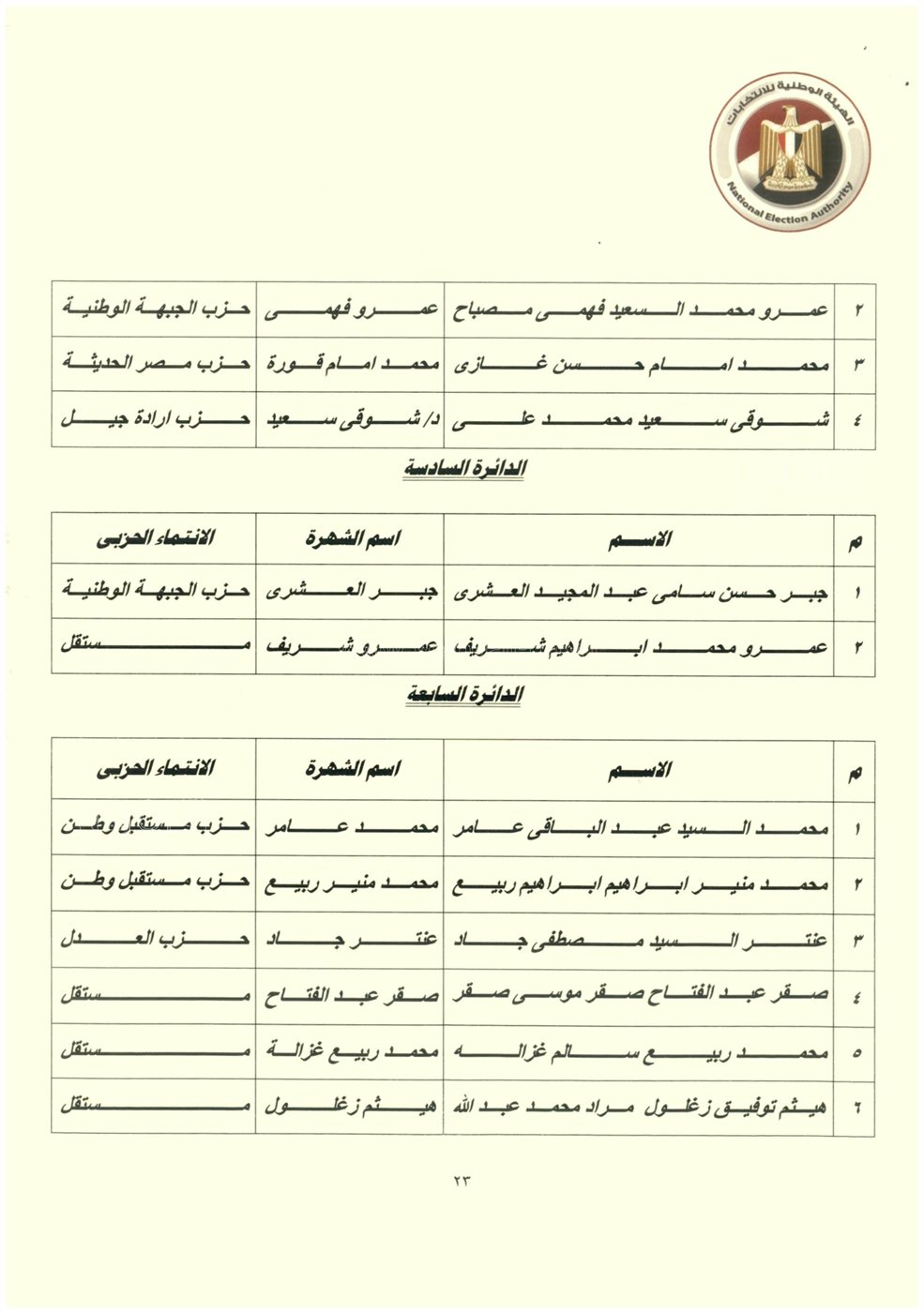 وكانت الهيئة أعلنت إلغاء نتائج 19 دائرة في المرحلة الأولى من الانتخابات، بالإضافة إلى 30 دائرة أخرى ألغتها المحكمة الإدارية العليا.