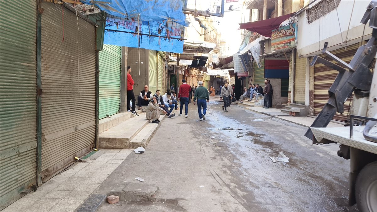محلات السوق التجاري بالمنصورة تغلق أبوابها حزنا علي ضحايا حريق مول الخواجات