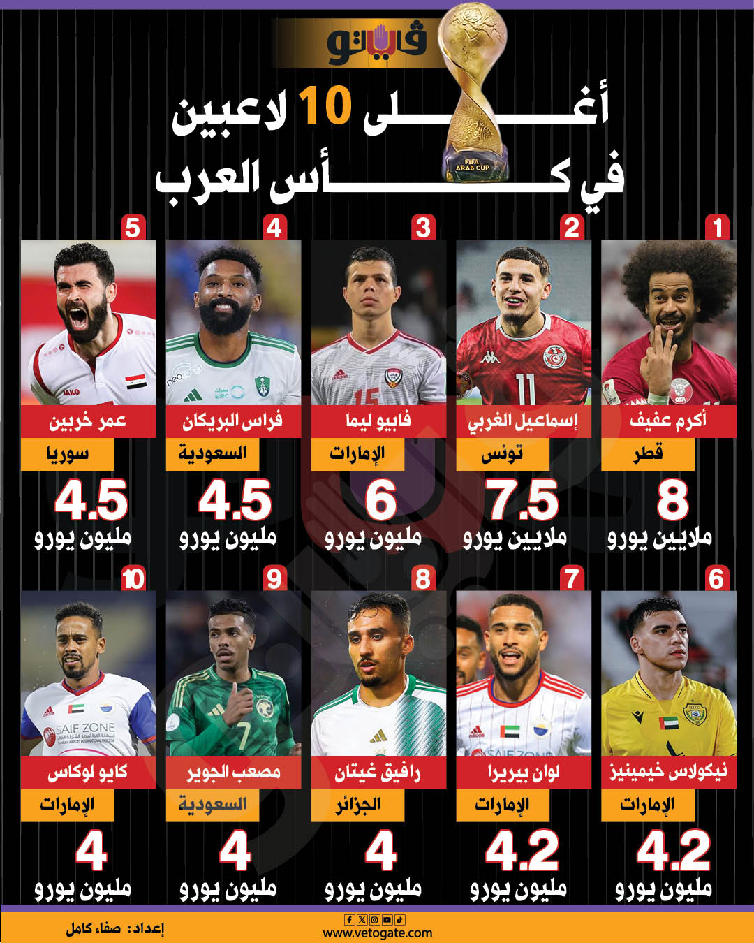 أغلى 10 لاعبين في كأس العرب (إنفوجراف)