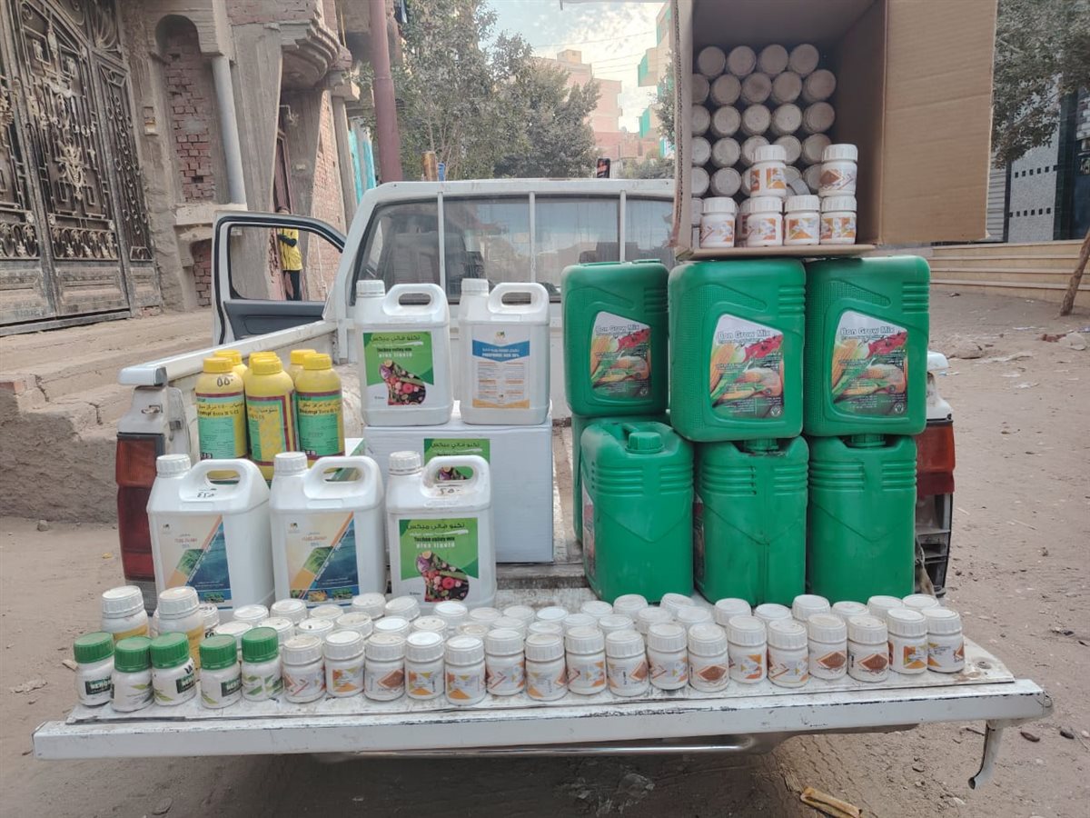 كما تم التحفظ على 1040 كيلو جرام لحوم ماشية فاسدة، 20 شيكارة نخالة خشنة بإجمالي وزن طن واحد، و574 عبوة مستحضرات تجميل مختلفة الأصناف والأنواع منتهية الصلاحية، و127 عبوة دهانات وبويات مختلفة الأصناف منتهية الصلاحية، و1175 لتر بنزين قبل بيعه بالسوق السوداء، 420 لترسولار قبل بيعه بالسوق السوداء، و1777 عبوة عصائر مختلفة الأصناف منتهية الصلاحية، 356 عبوة أدوية محظور بيعها أو تداولها خارج منظومة التأمين الصحي بأحد محلات المستلزمات الطبية الغير مرخصة، 63 كيلو جرام مكرونة غش تجاري نقص وزن، 547 علبة سجائر بيع أزيد من السعر الرسمى، 830 زجاجة زيت تمويني قبل بيعها بالسوق السوداء بغرض التربح، 293 عبوة مبيدات زراعية منتهية الصلاحية، 23 اسطوانة غاز صغيرة الحجم قبل بيعها بالسوق السوداء، 4850 كيلو جرام سماد زراعي محظور بيعه أو تداوله خارج الجمعيات الزراعية قبل بيعه بالسوق السوداء.