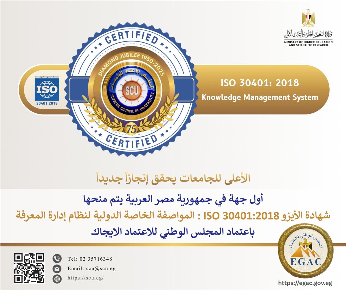الأعلى للجامعات يحصل على شهادة الحوكمة ونظام إدارة المعرفة (EGAC)