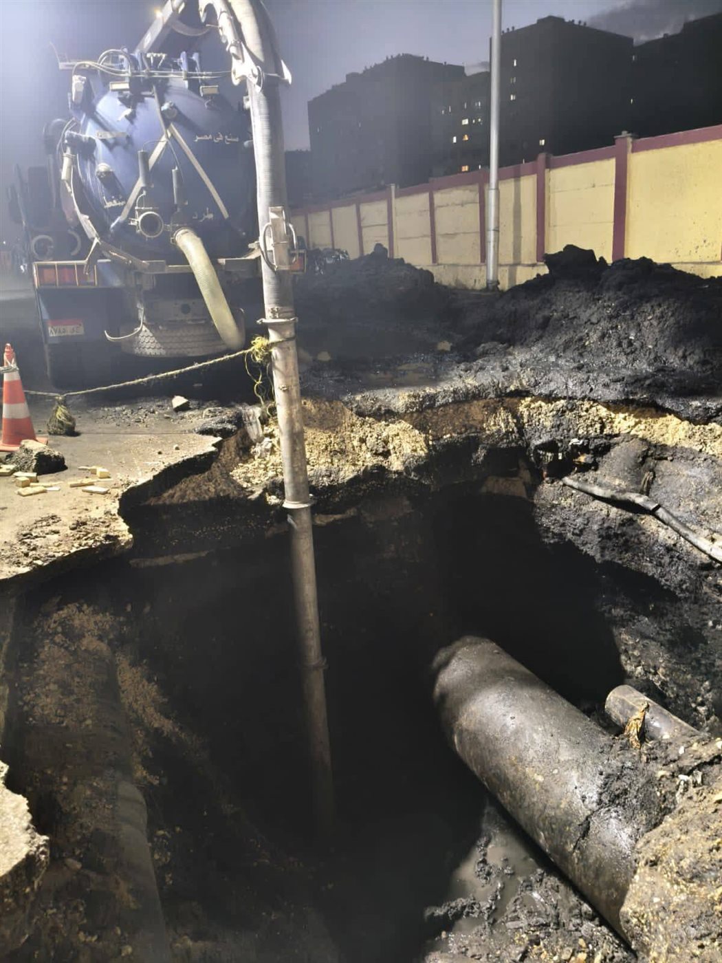 يواصل قيادات محافظة الجيزة ورئيس شركة المياه، أعمال إصلاح الكسر المفاجئ في خط 1000 مم بشارع ربيع الجيزي بجوار مستشفى أم المصريين.