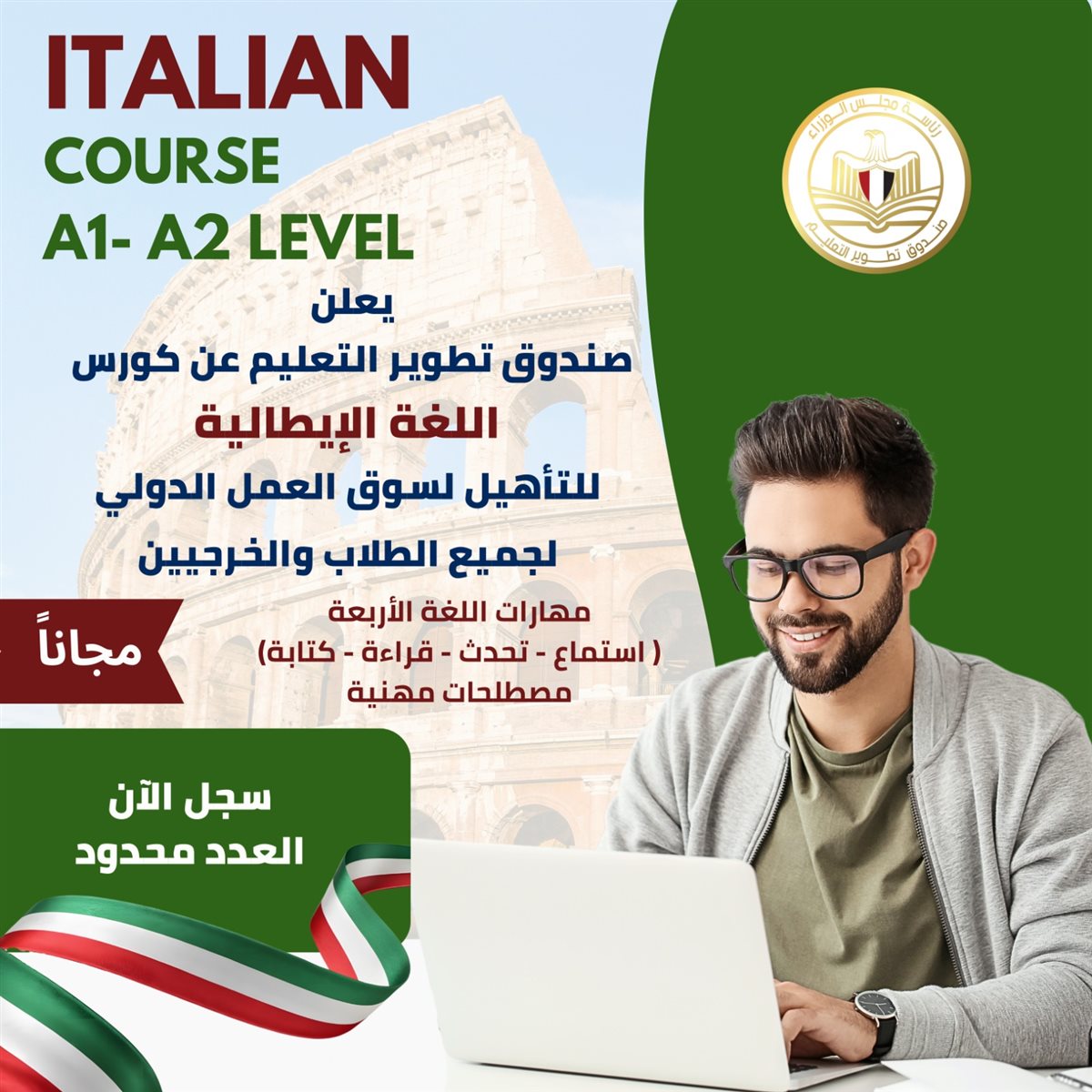 أعلن صندوق تطوير التعليم التابع لرئاسة مجلس الوزراء، عن بدء تنفيذ برنامج جديد لتعليم اللغة الإيطالية مجانًا، وذلك ضمن خطته التوسعية لدعم مهارات الشباب المصري في اللغات الأجنبية وربطها بمتطلبات سوق العمل الدولي، بما يتيح لهم فرصًا أوسع للتوظيف داخل مصر وخارجها.
