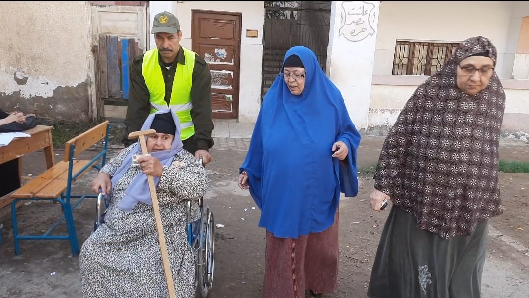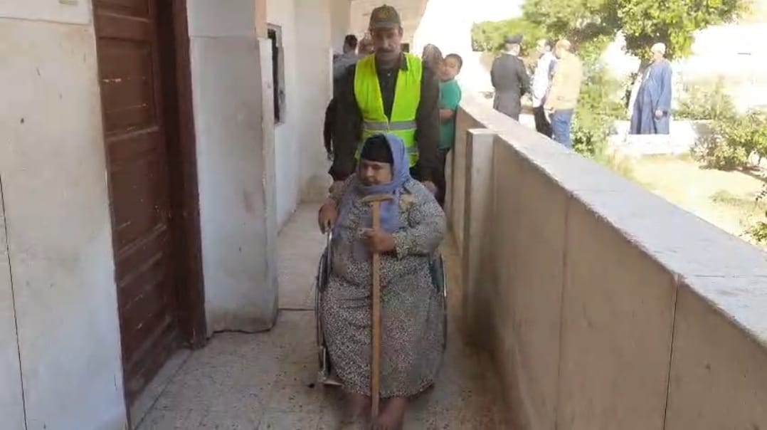 سيدة تدلي بصوتها على كرسي متحرك في انتخابات النواب بالبحيرة (صور)