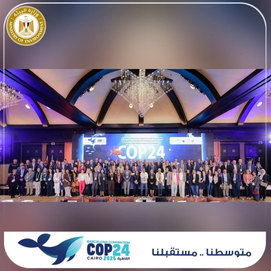 اختتمت القاهرة فعاليات الدورة الرابعة والعشرين لاجتماع الأطراف المتعاقدة في اتفاقية برشلونة COP24، بإعلان مجموعة من القرارات الحاسمة التي رسّخت مكانة مصر كقوة إقليمية رائدة في حماية البيئة البحرية للبحر المتوسط، وجاء ذلك بحضور وزراء وممثلي 21 دولة متوسطية من 2 إلى 5 ديسمبر.